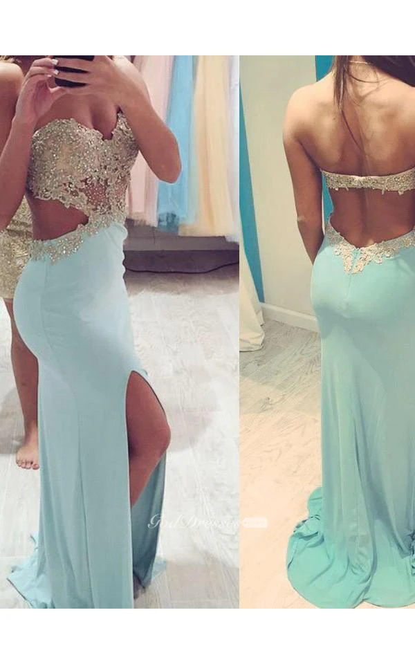 sheath Sweetheart Sleeveless Sweep Train Beading Spandex Dresses