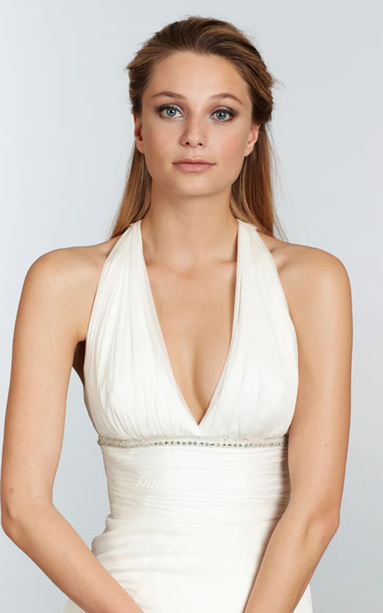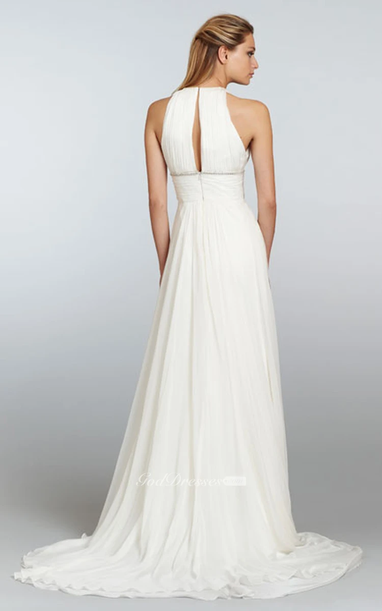 Shimmering Ruched Bodice Chiffon Sheath Dress With Beaded Empire Waist