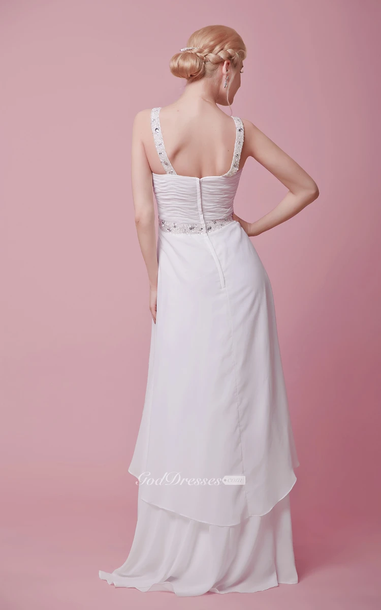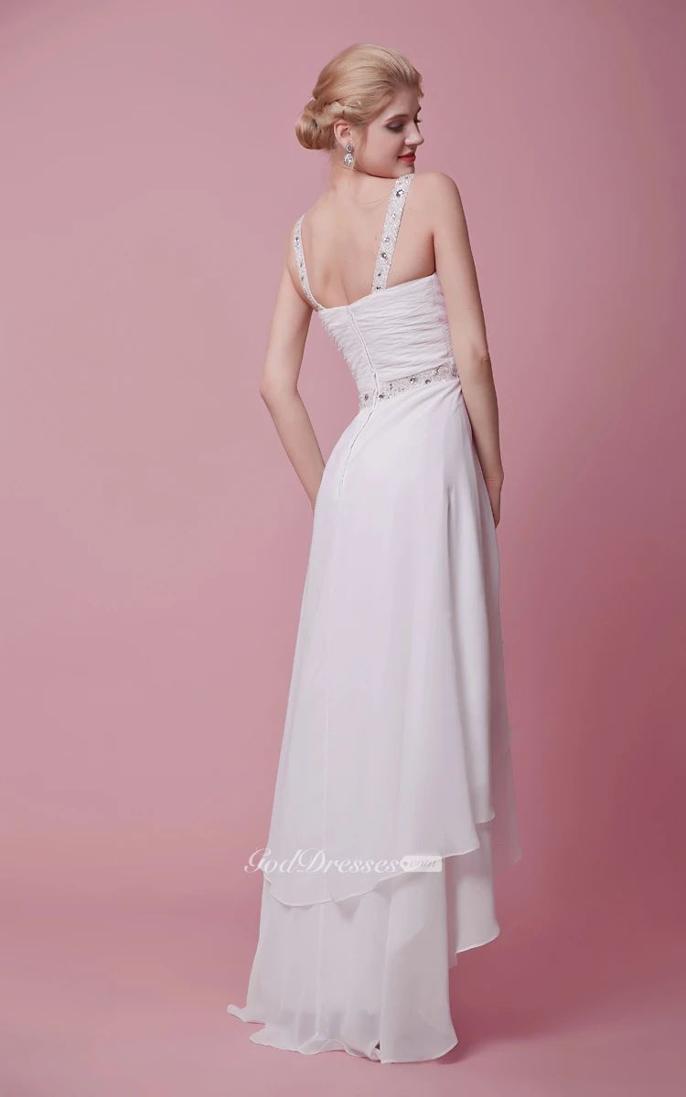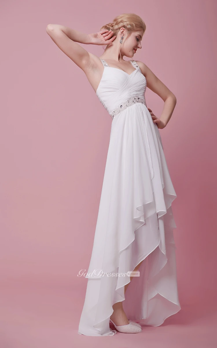 Shimmering Sleeveless Bodice High-low Chiffon Dress With Straps