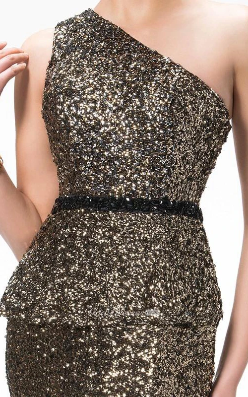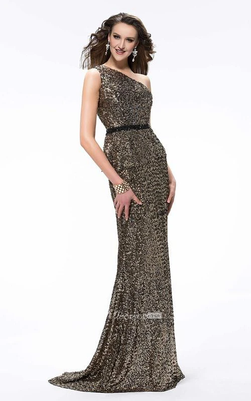 Shinning One-Shoulder Sequins Sweep Train Beading Floor-Length Evening Dress