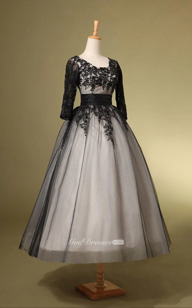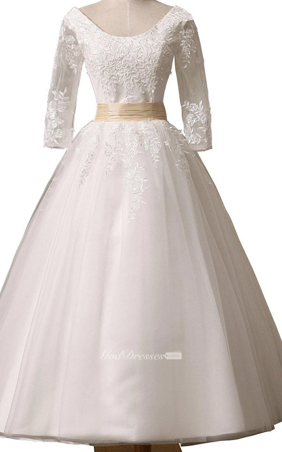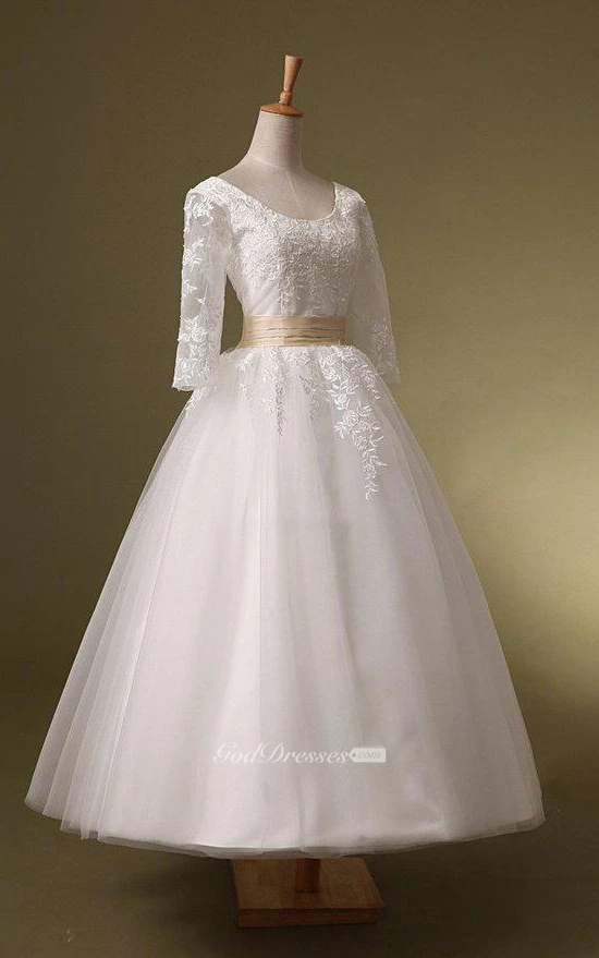 Short 3-4 Sleeve Corset Back Tulle Lace Dress