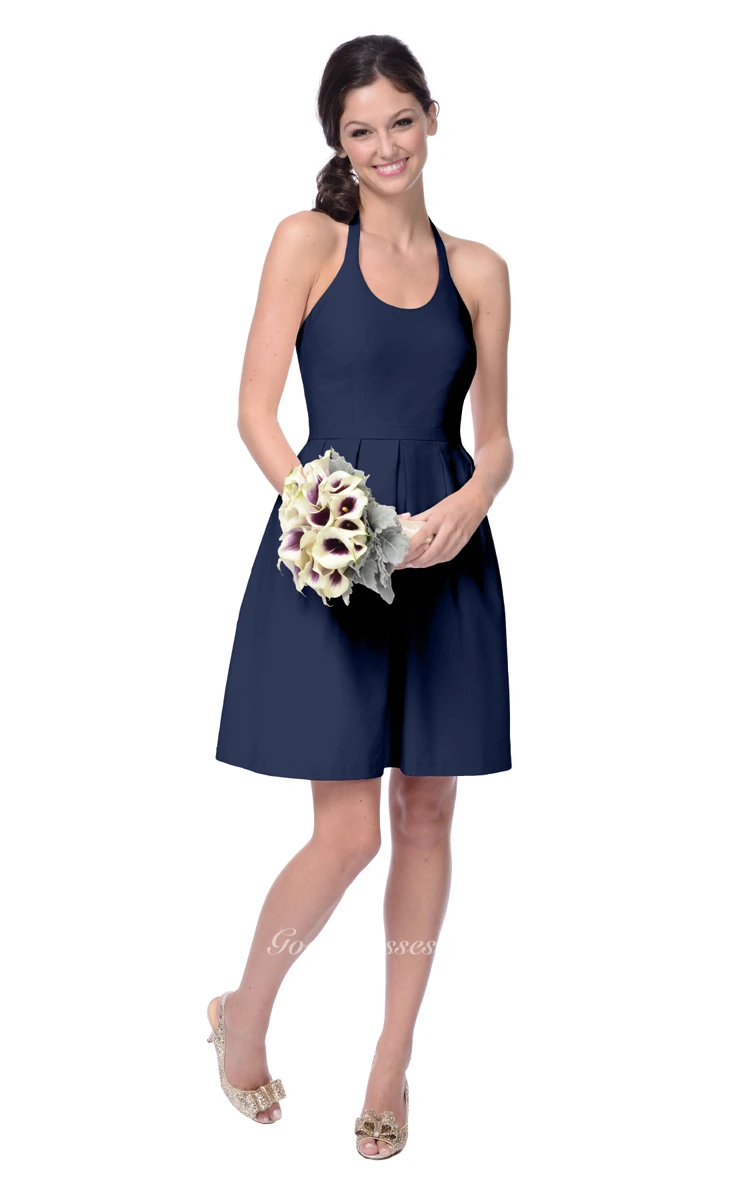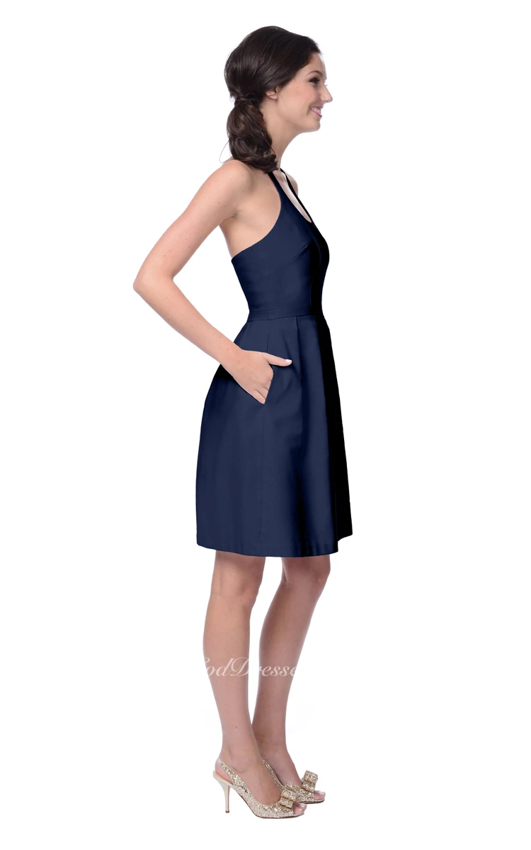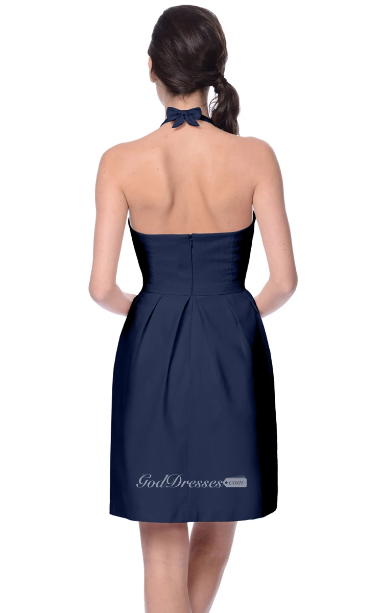 Short A-Line Sleeveless Halter Unique Dress With Zipper Back