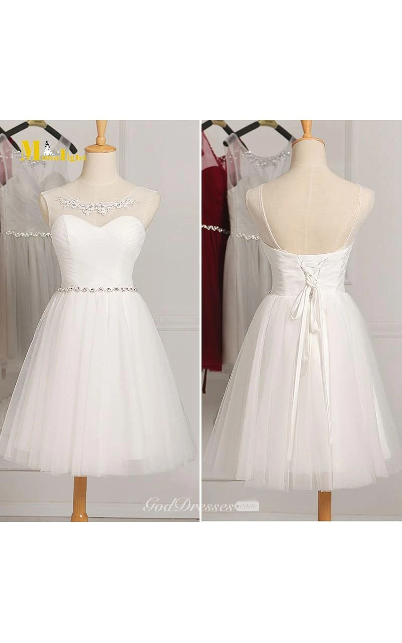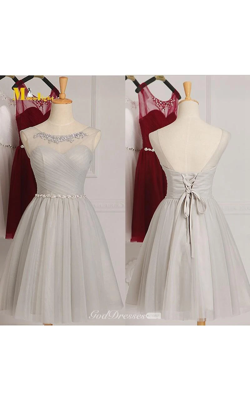 Short A-Line Tulle Sweetheart Illusion Ruched Bodice