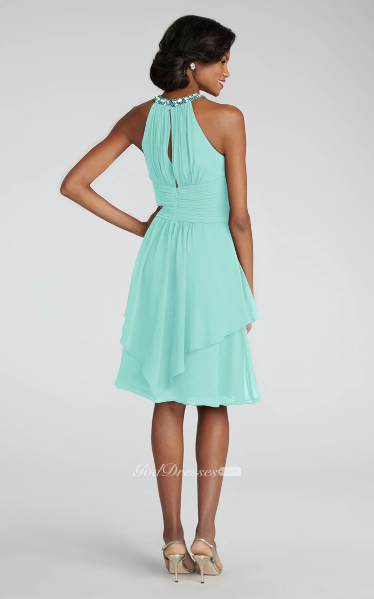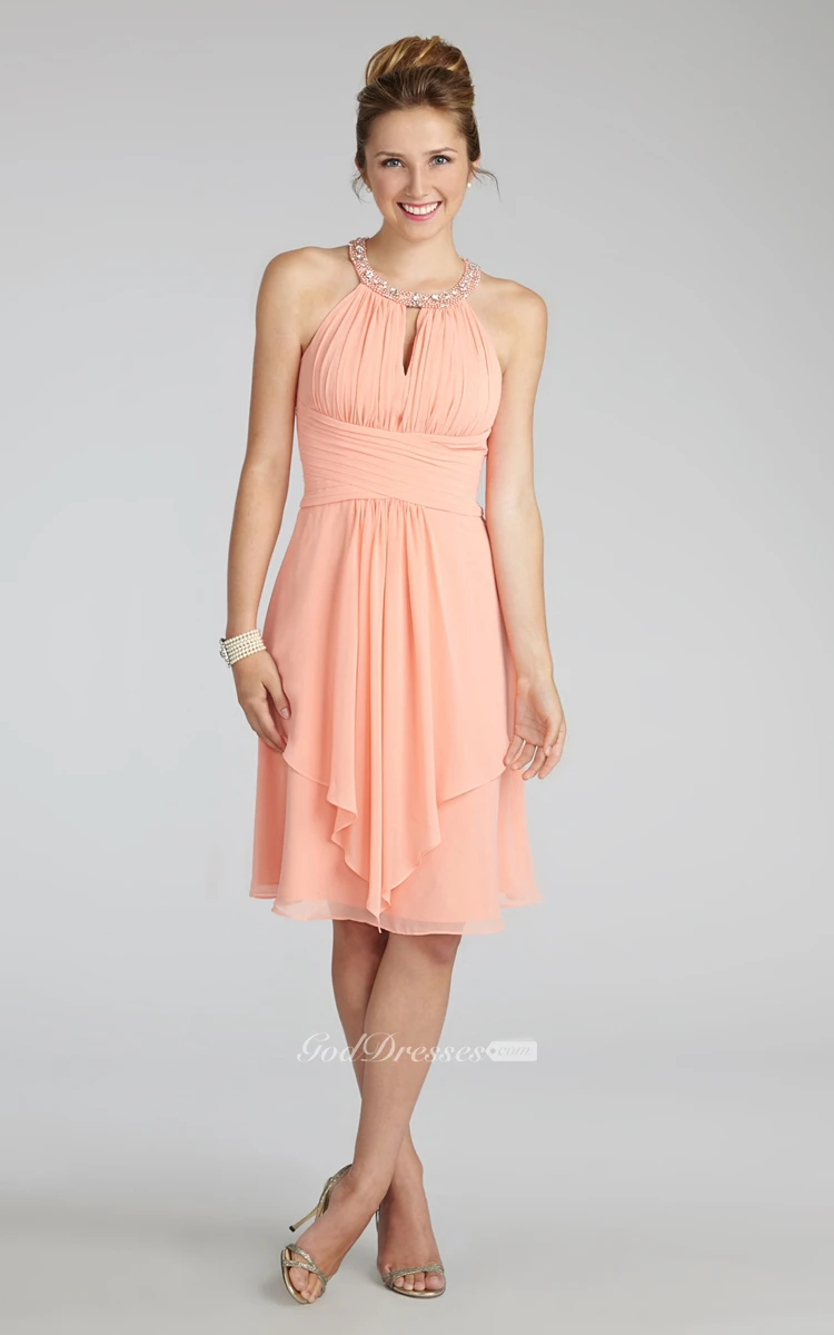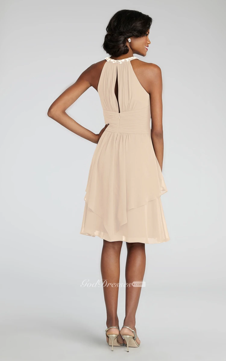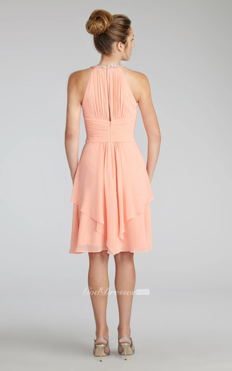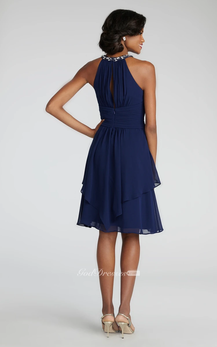 Short Chiffon Dress With Beaded Jewel Neck