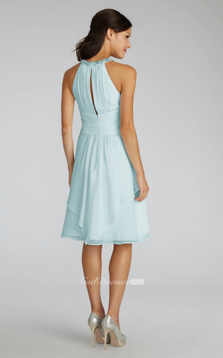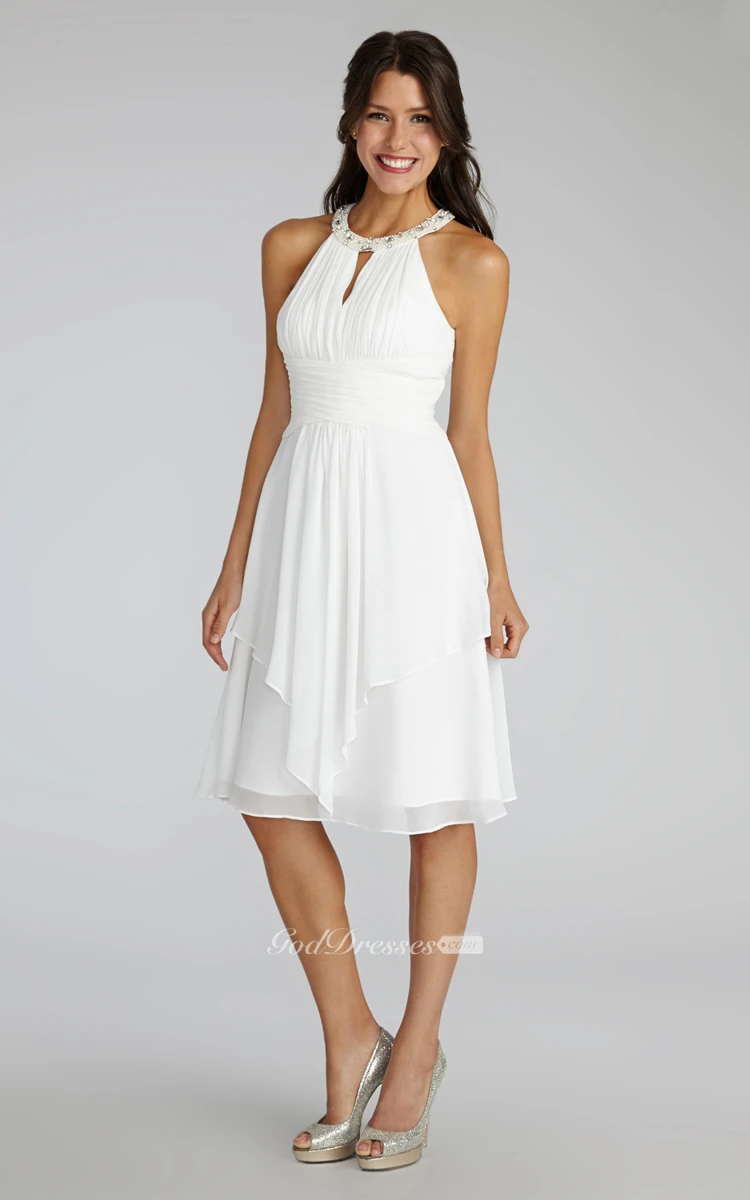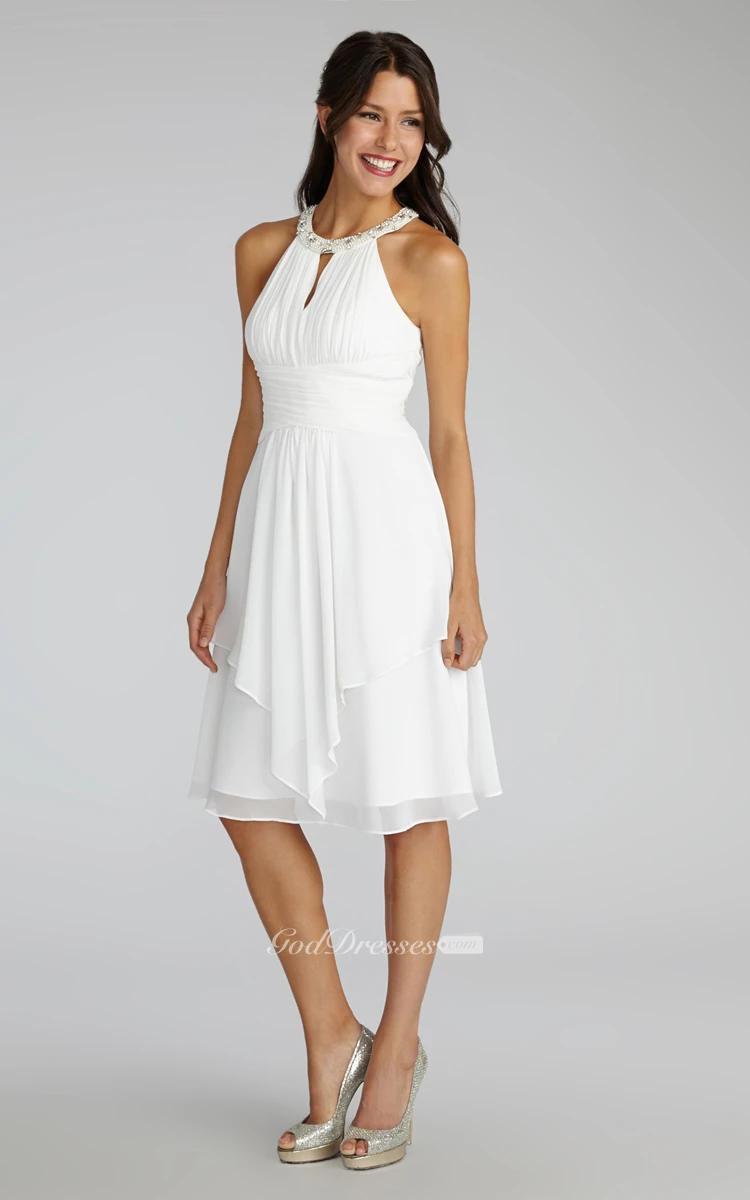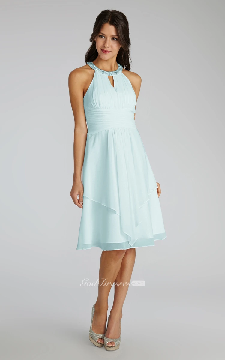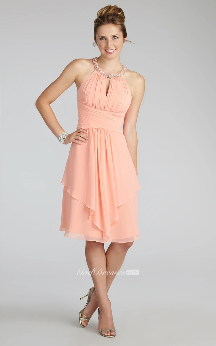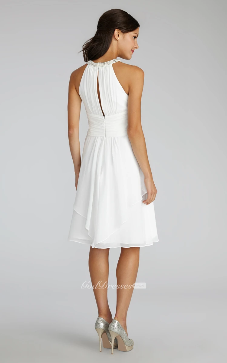 Short Chiffon Dress With Beaded Jewel Neck