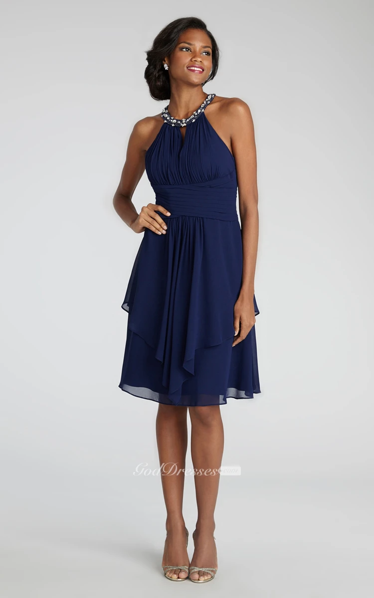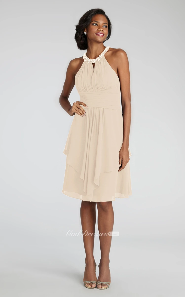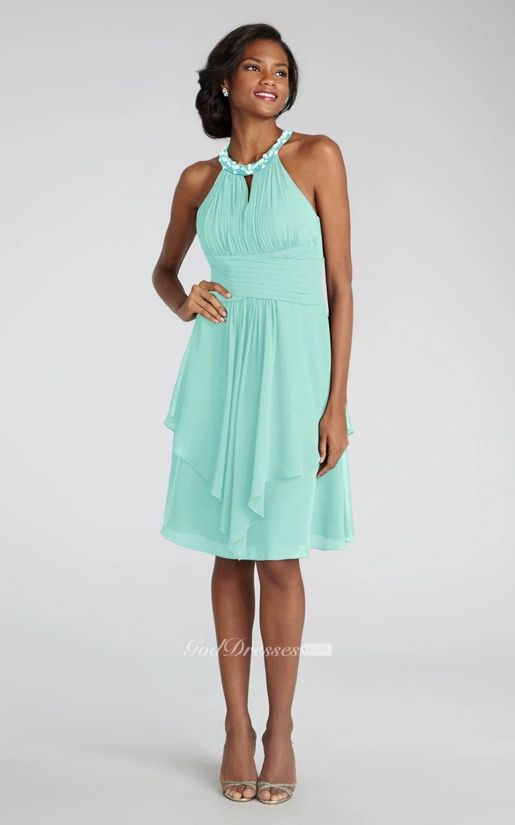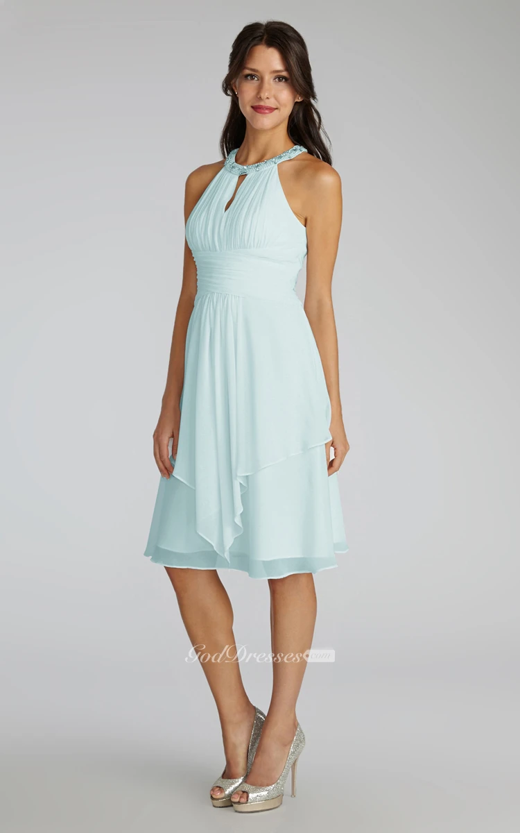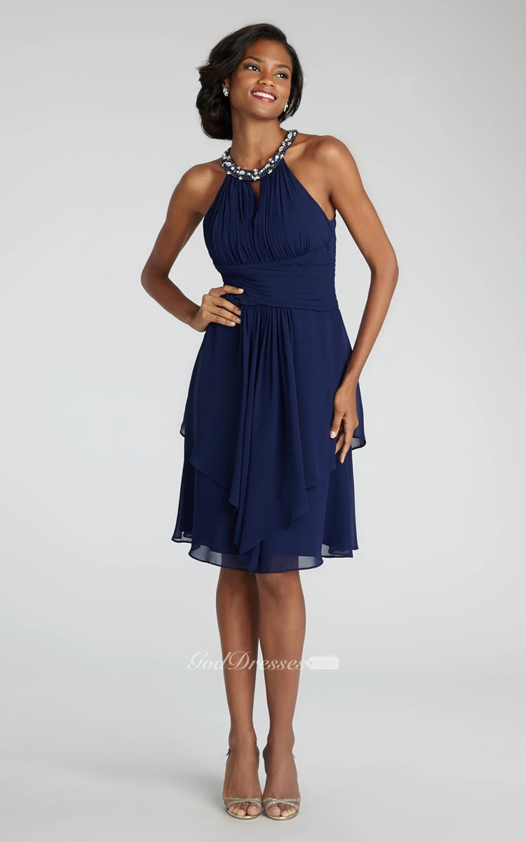 Short Chiffon Dress With Beaded Jewel Neck