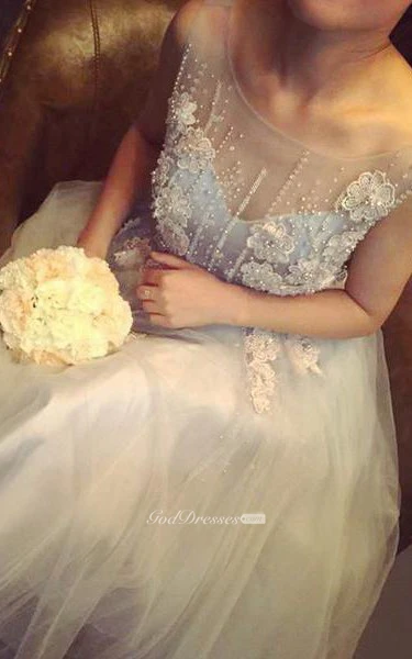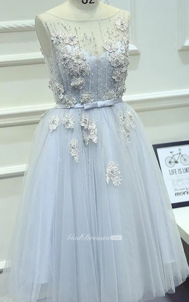 Short Cute Jewel Pleated Knee-length Tulle Dress With Appliques