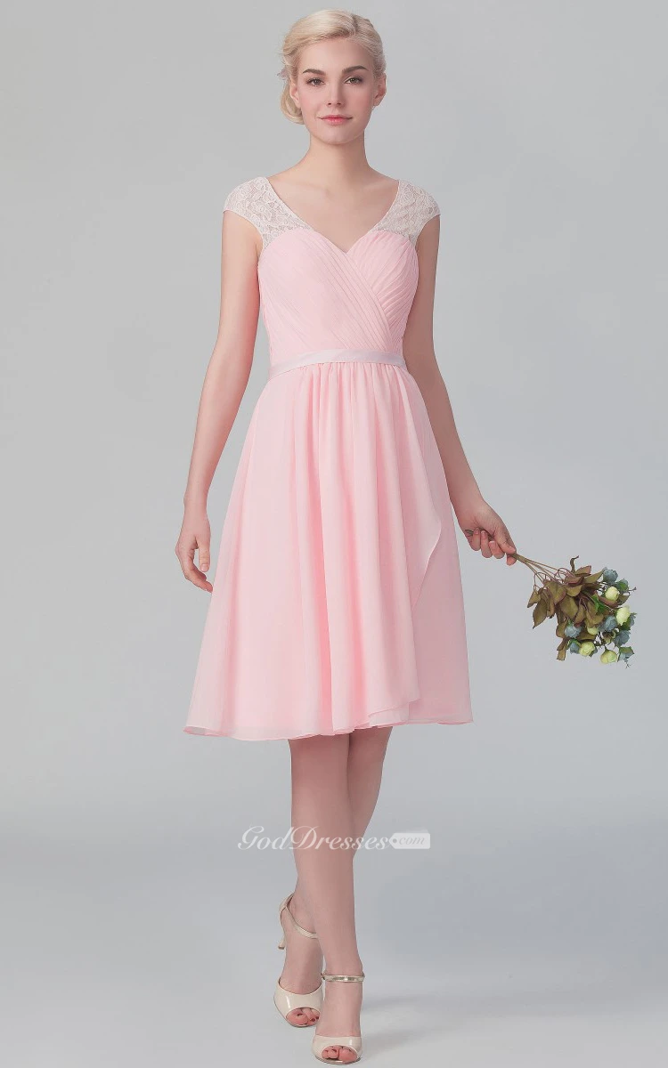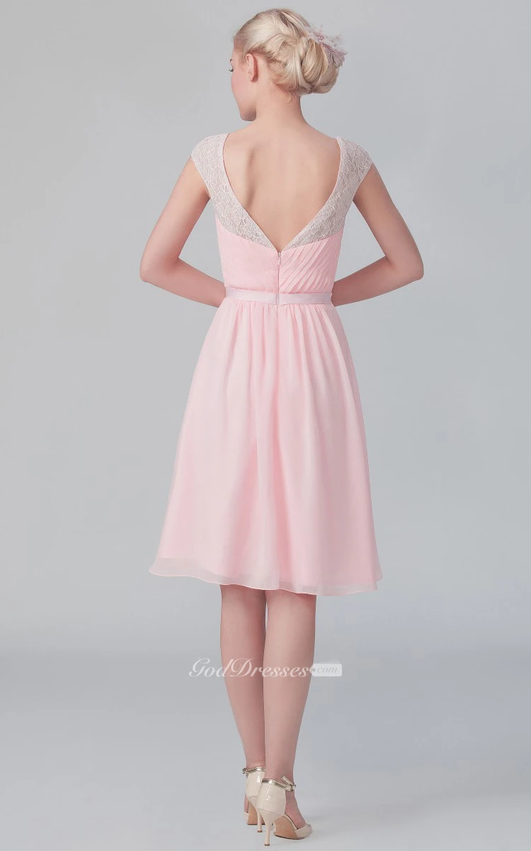 Short Graceful Cap-Sleeved Chiffon Dress With V Back