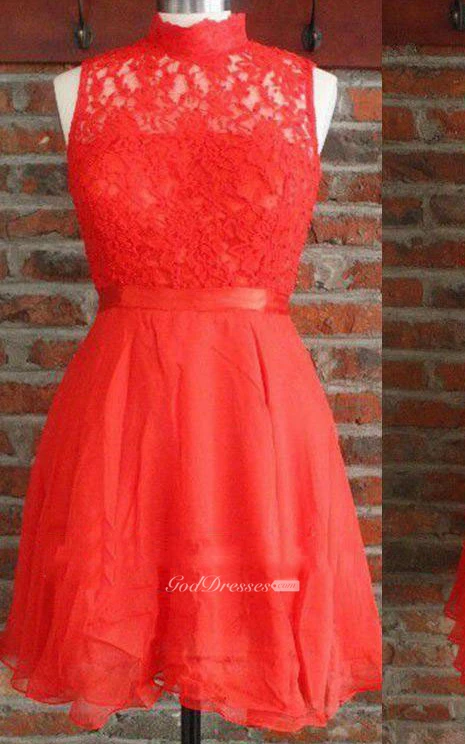 Short High Neck Chiffon&Lace Dress