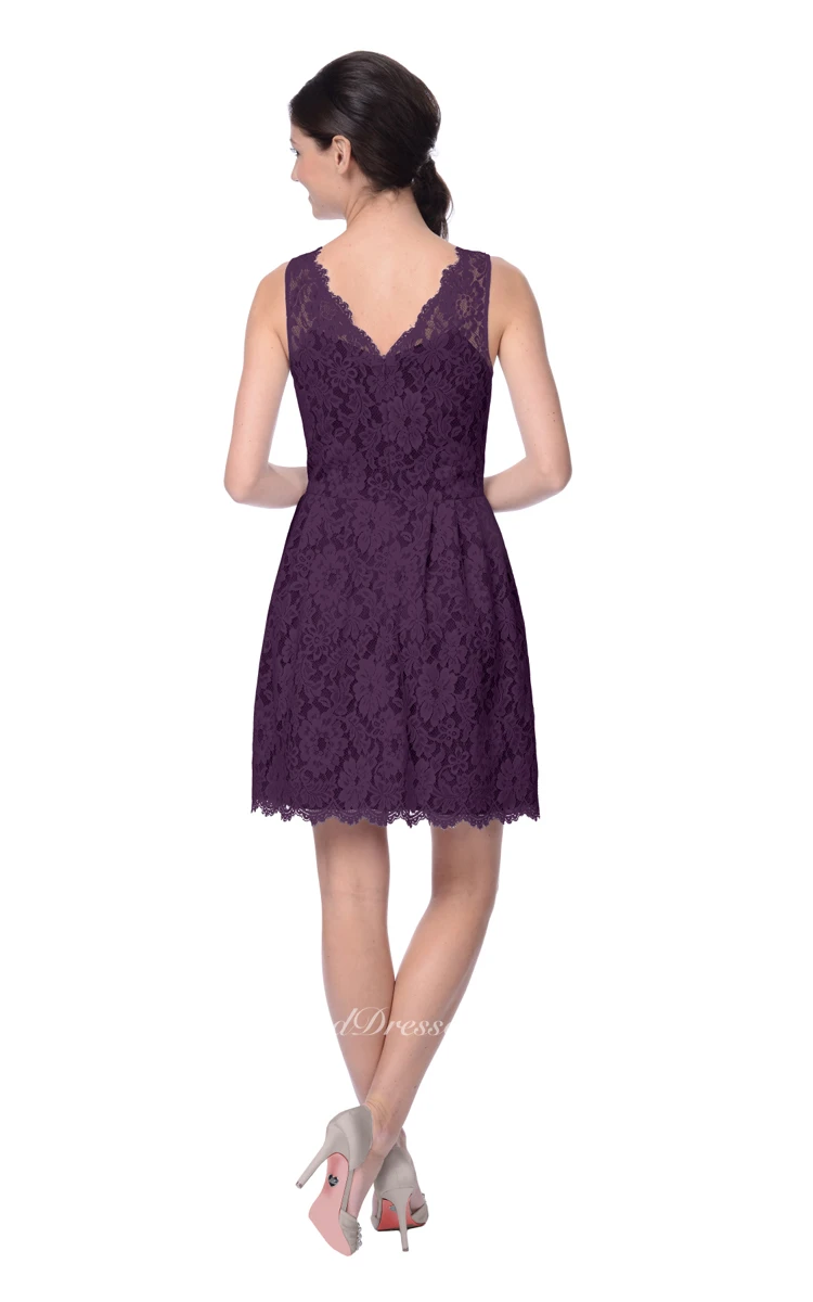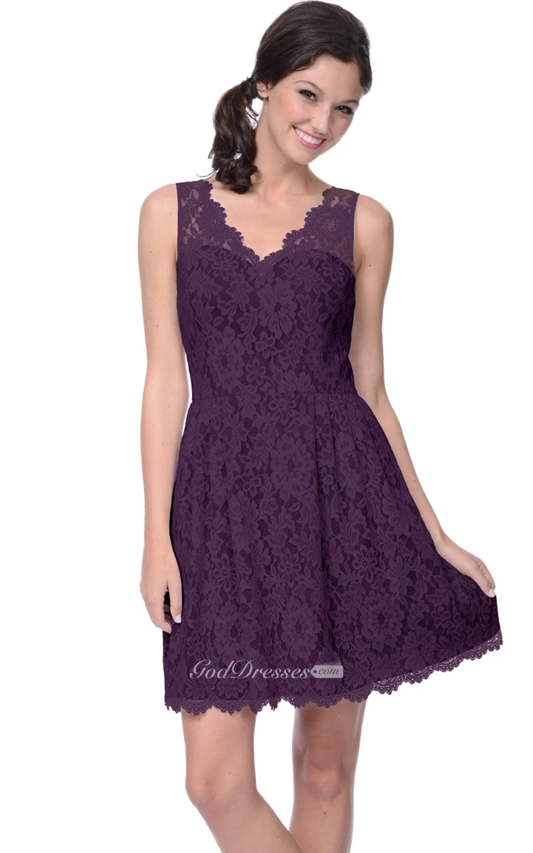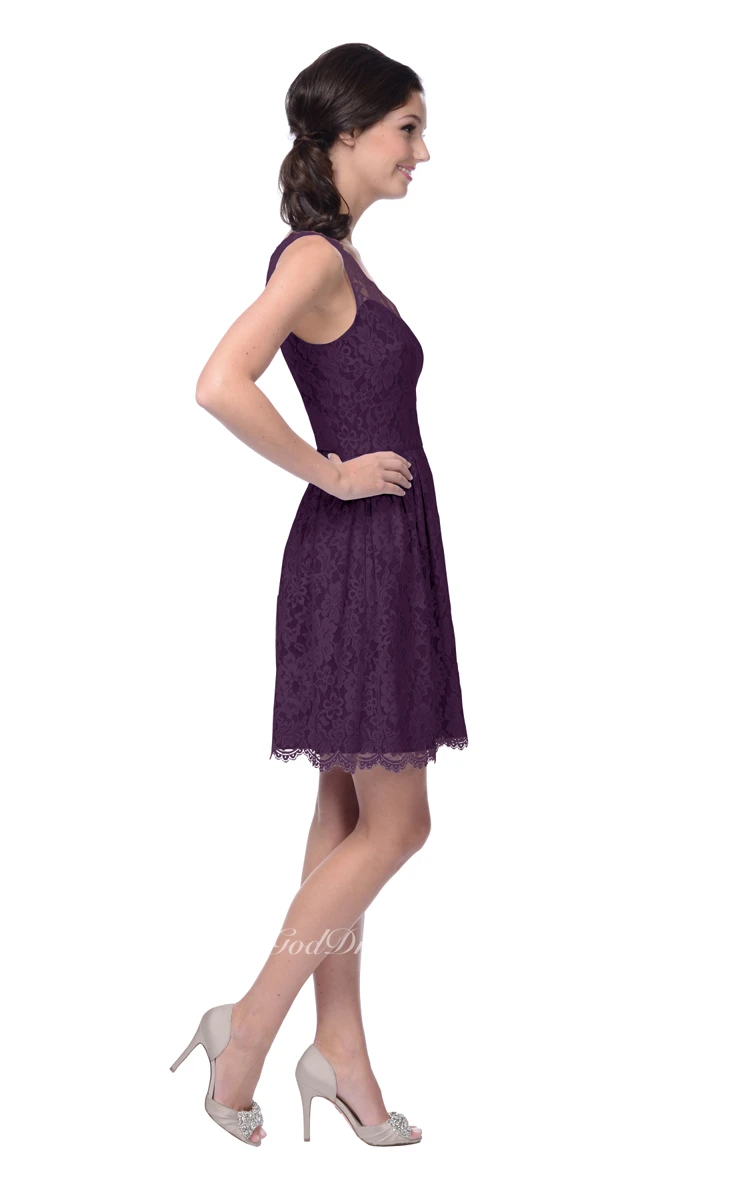 Short Lace Dress With Scalloped Edge Neckline
