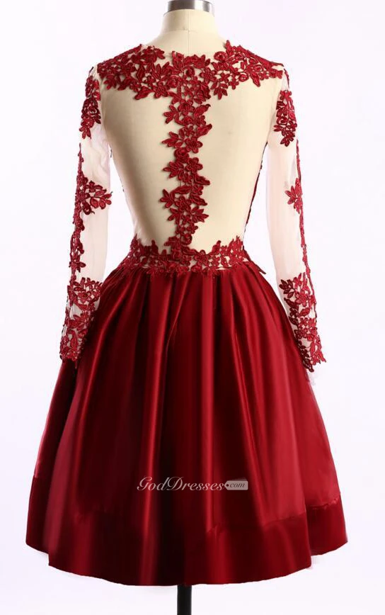 Short Long Sleeve Appliques Keyhole Lace Satin Dress