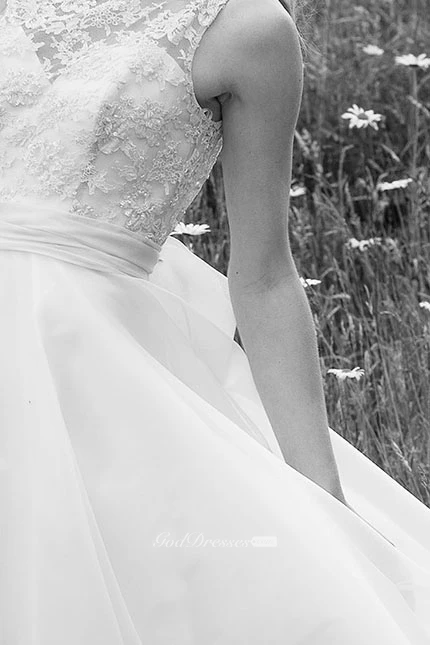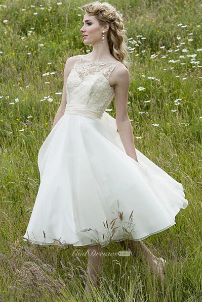 Short Scoop Appliqued Sleeveless Chiffon Wedding Dress