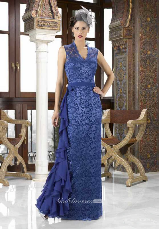 Short Sleeve Appliqued V-Neck Lace Mother Of The Bride Dress