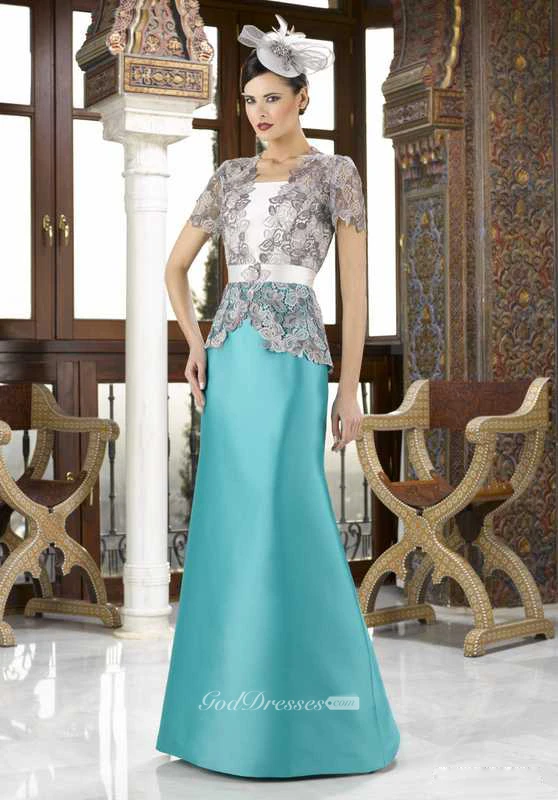 Short Sleeve Lace Square Neck Satin Mother Of The Bride Dress