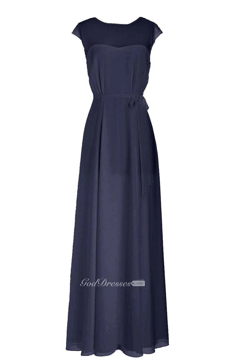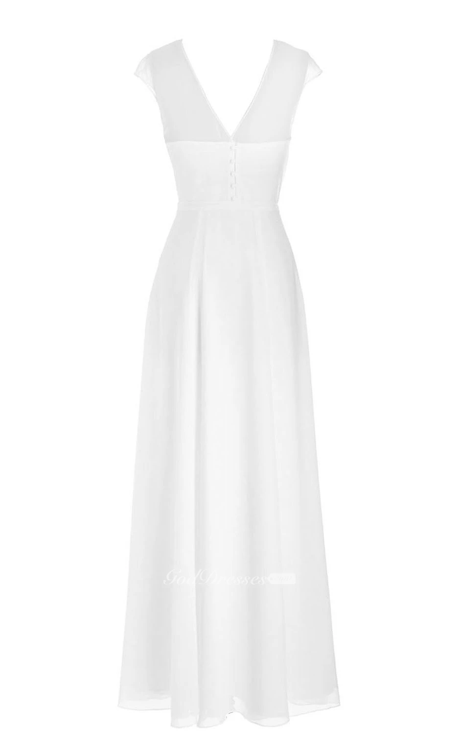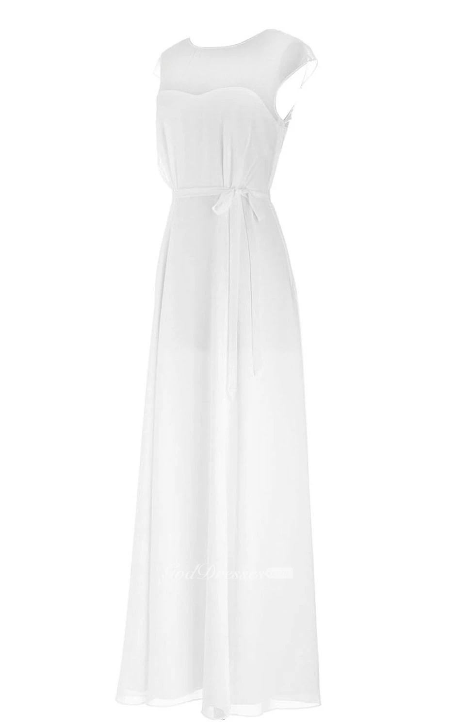 Short Sleeve Long Pleated Chiffon Dress With Bowknot