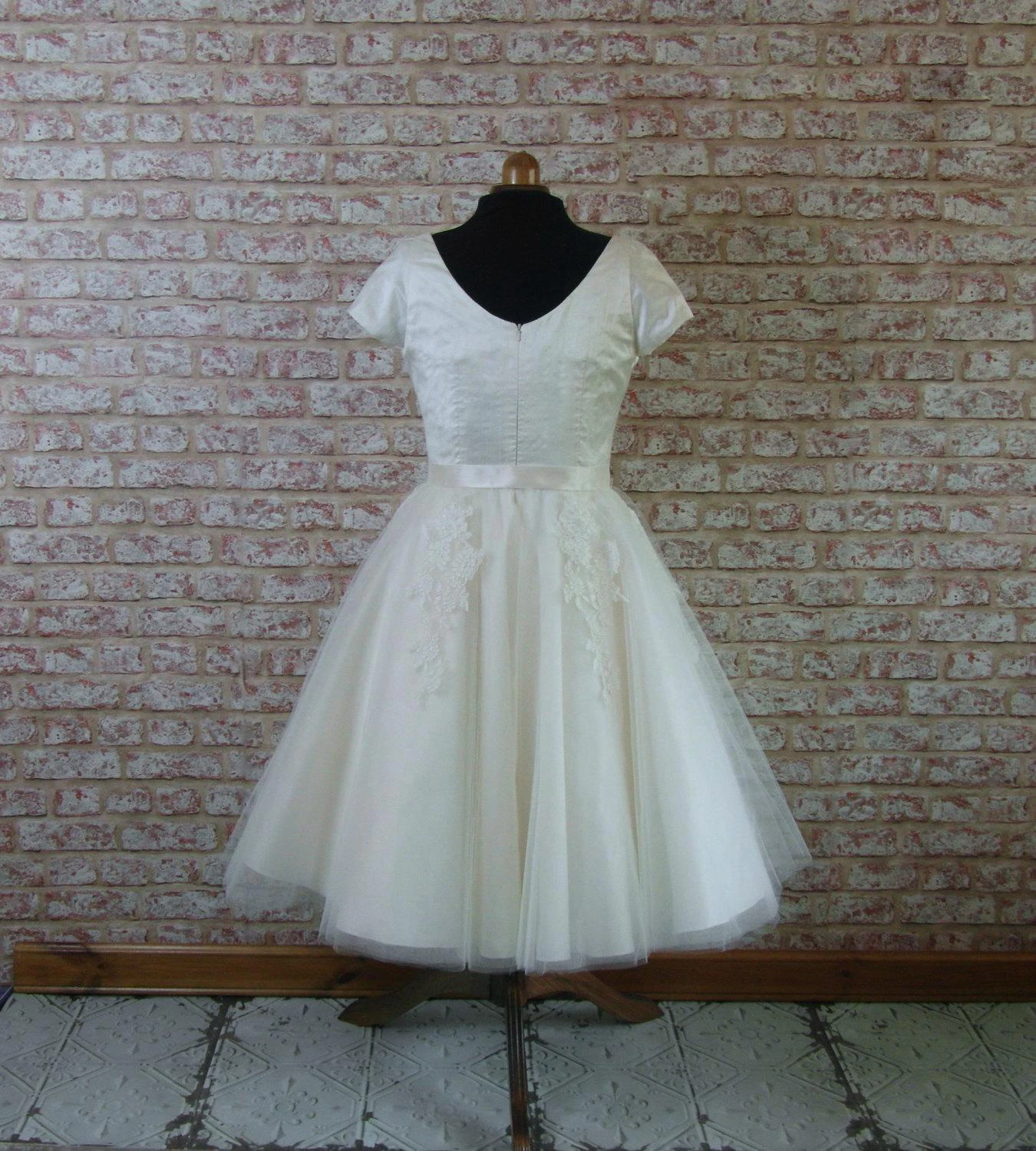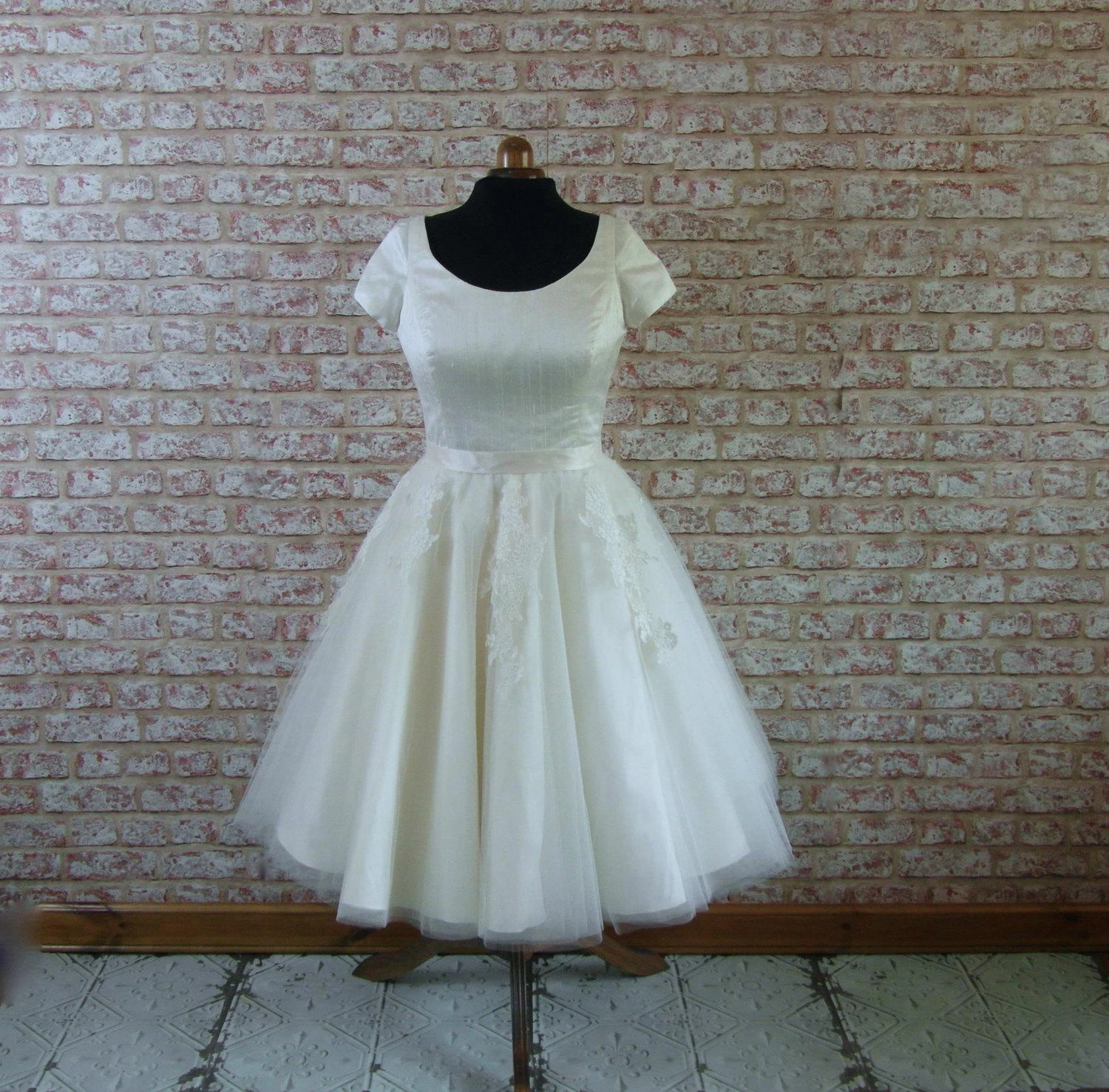 Short Sleeve Tulle and Satin A-Line Dress With Lace Appliques