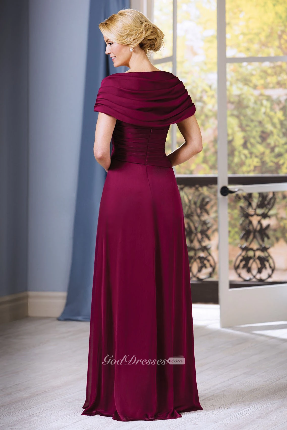 Short-Sleeved A-Line Gown With Beadings And Ruching