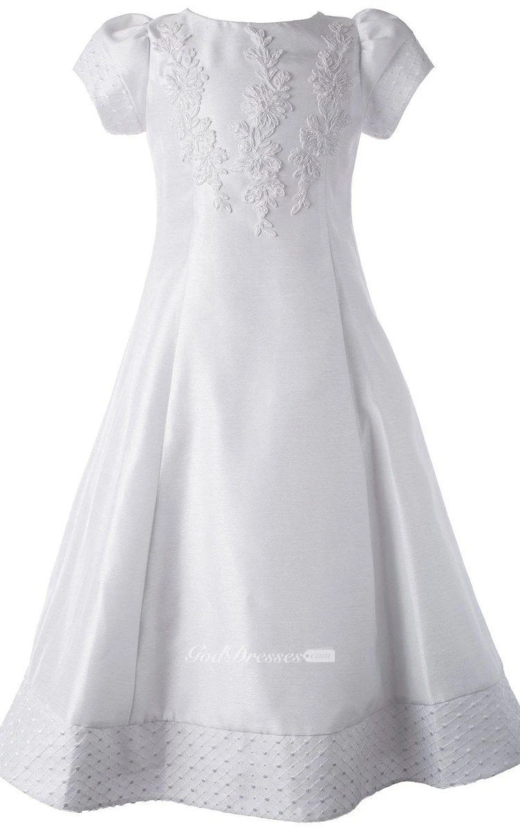 Short-sleeved Bateau-neck A-line Dress With Appliques