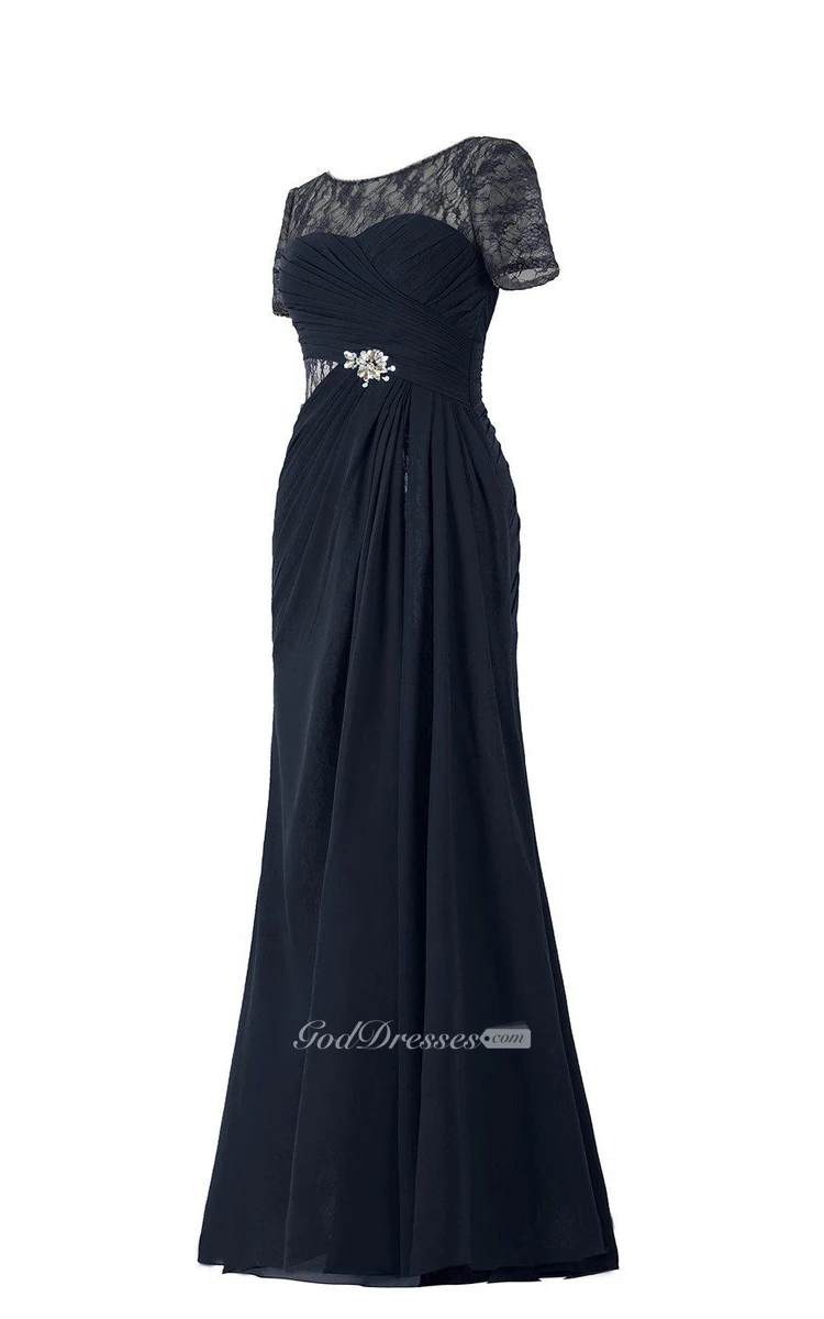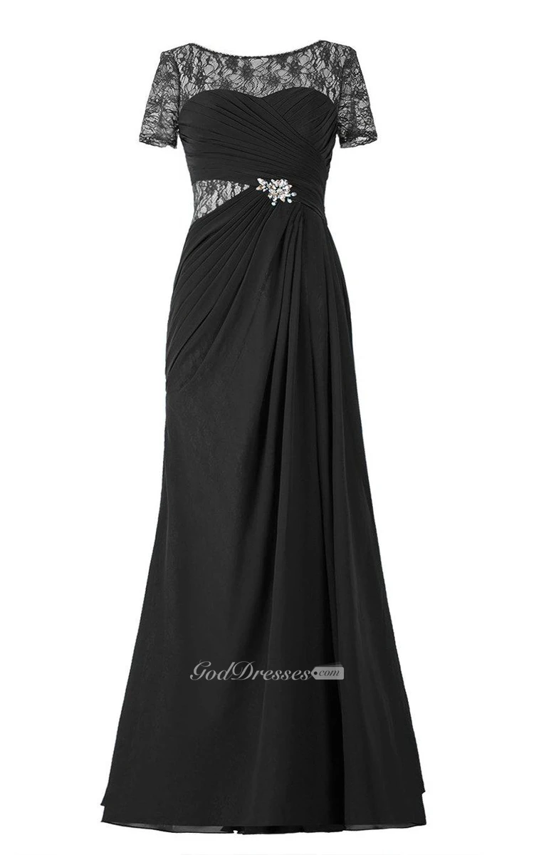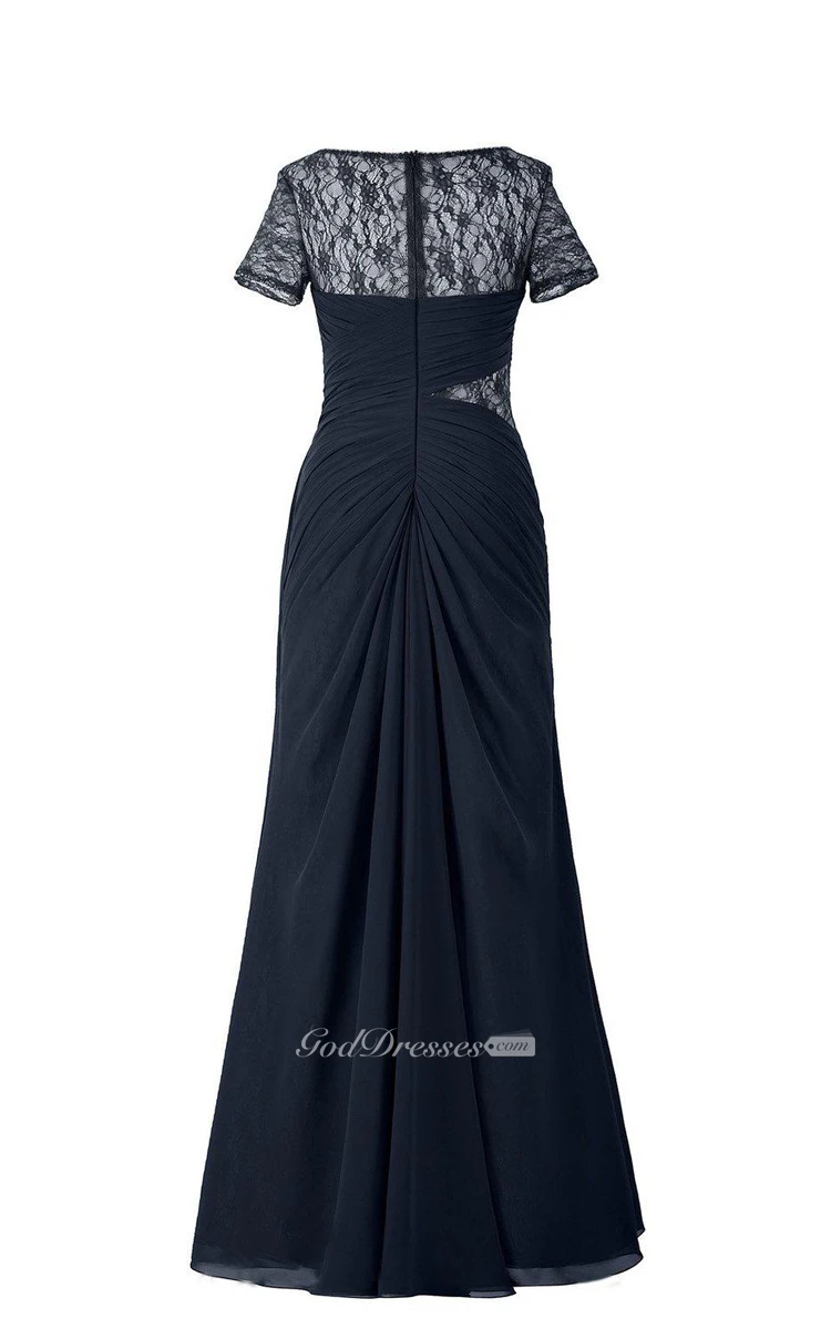 Short-sleeved Chiffon Gown With Illusion Style