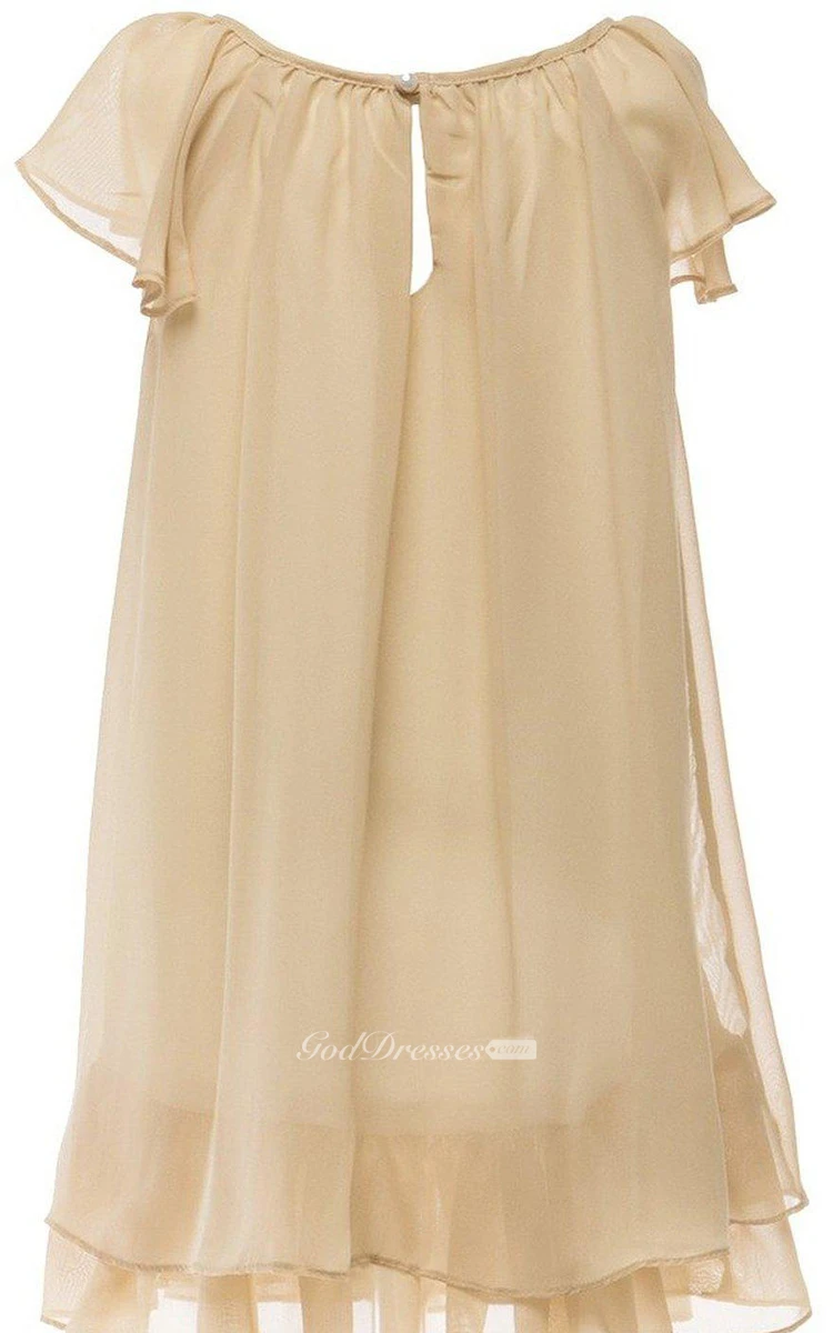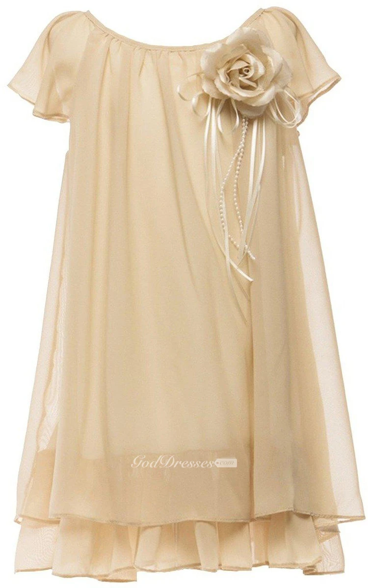Short-sleeved Dress With Flower and Illusion Style
