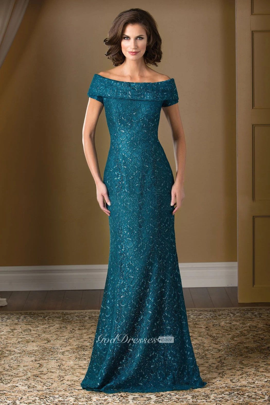 Short-Sleeved Long Lace Mother Of The Bride Dress With Sweep Train