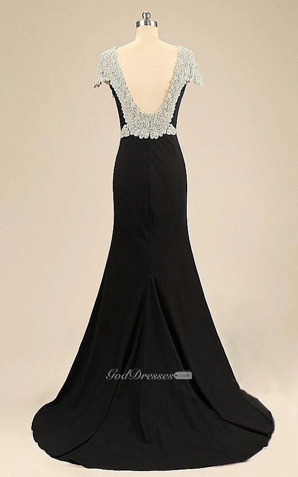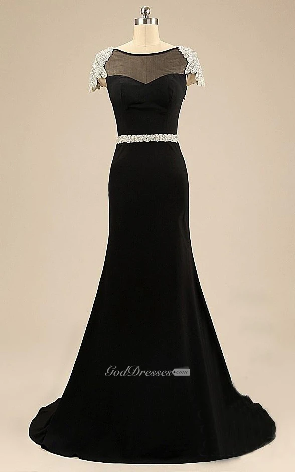 Short-sleeved Mermaid Chiffon Dress with Lace