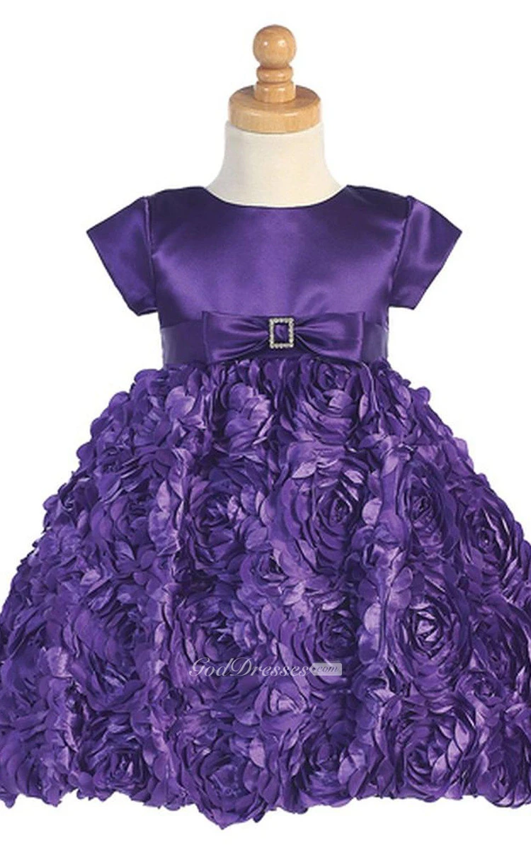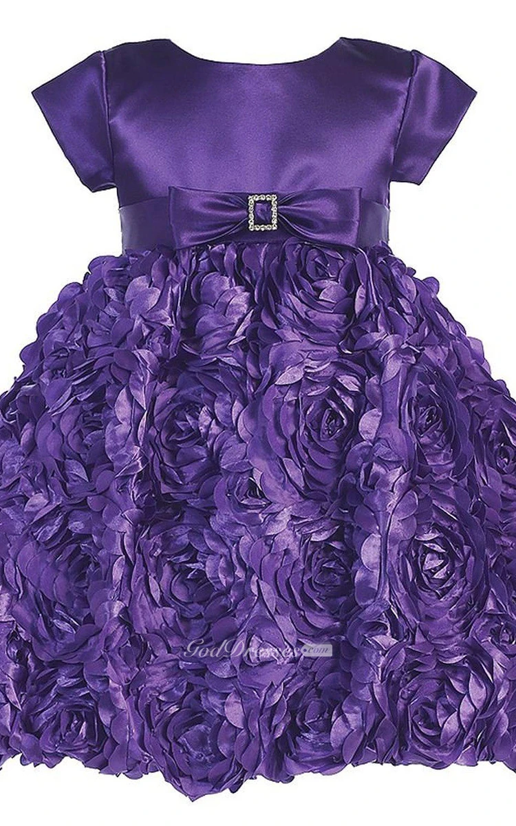 Short-sleeved Scoop-neck Dress With Petals and Bow