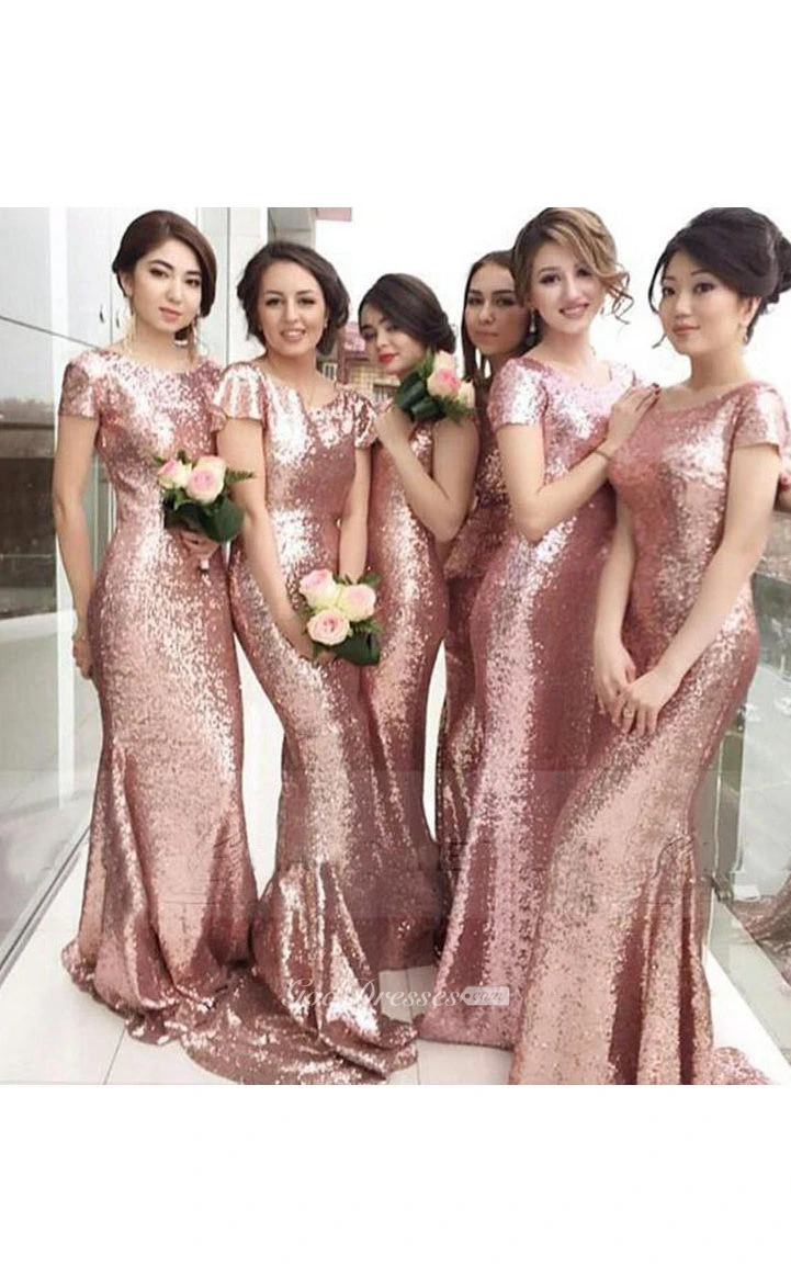 Short-sleeved Scoop-neck Long Sequined Mermaid Dress