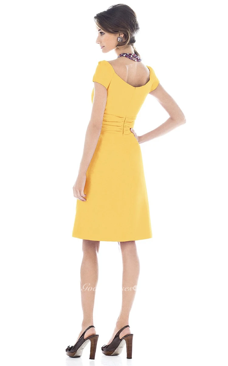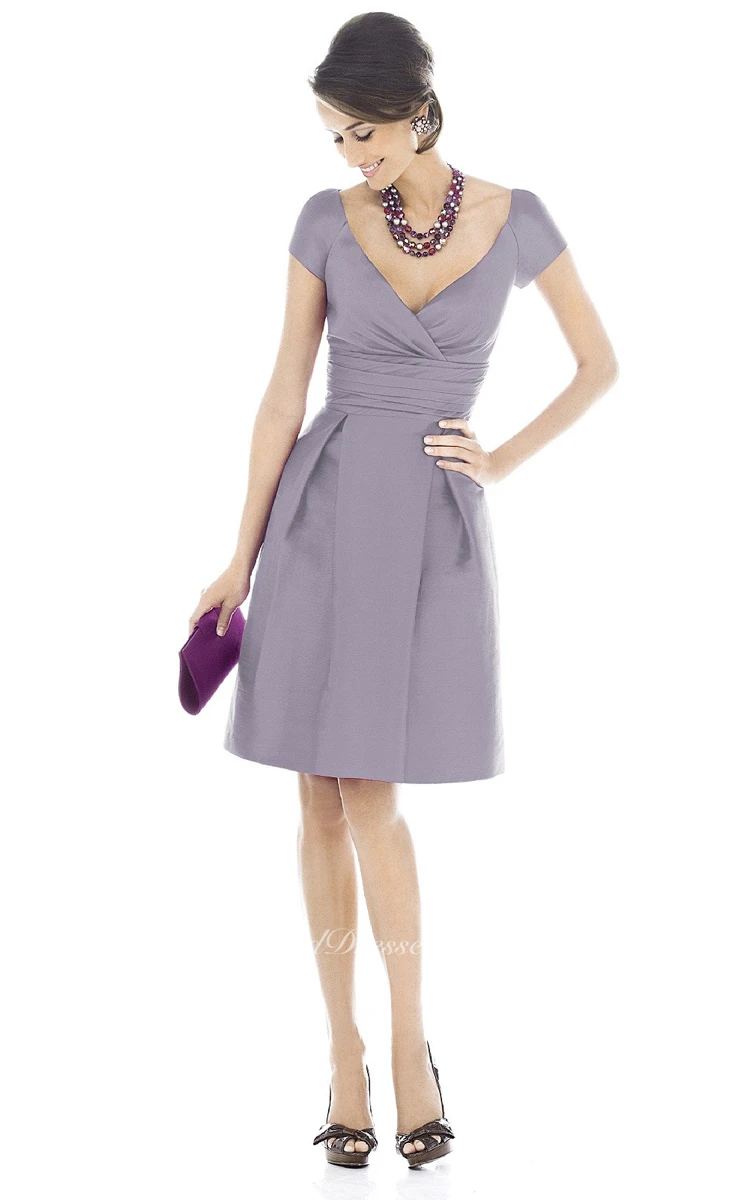 Short-Sleeved Short A-Line Dress With Zipper Back