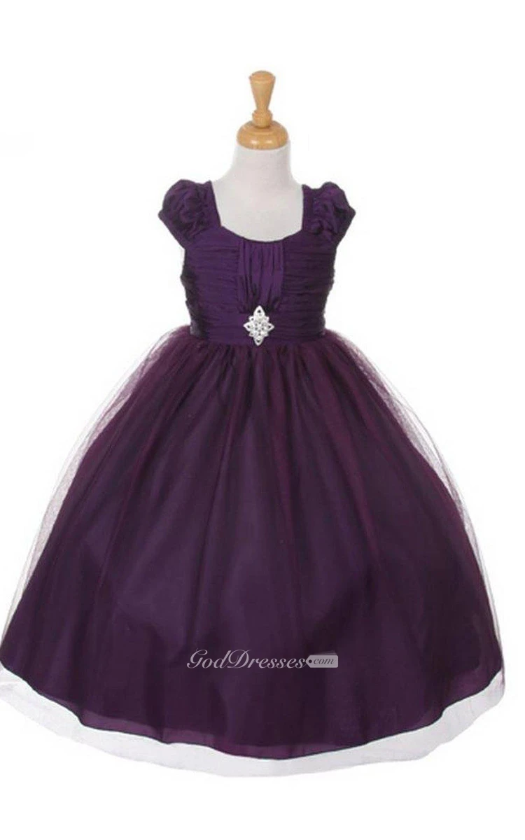 Short-sleeved Square-neck A-line Pleated Dress With Beadings