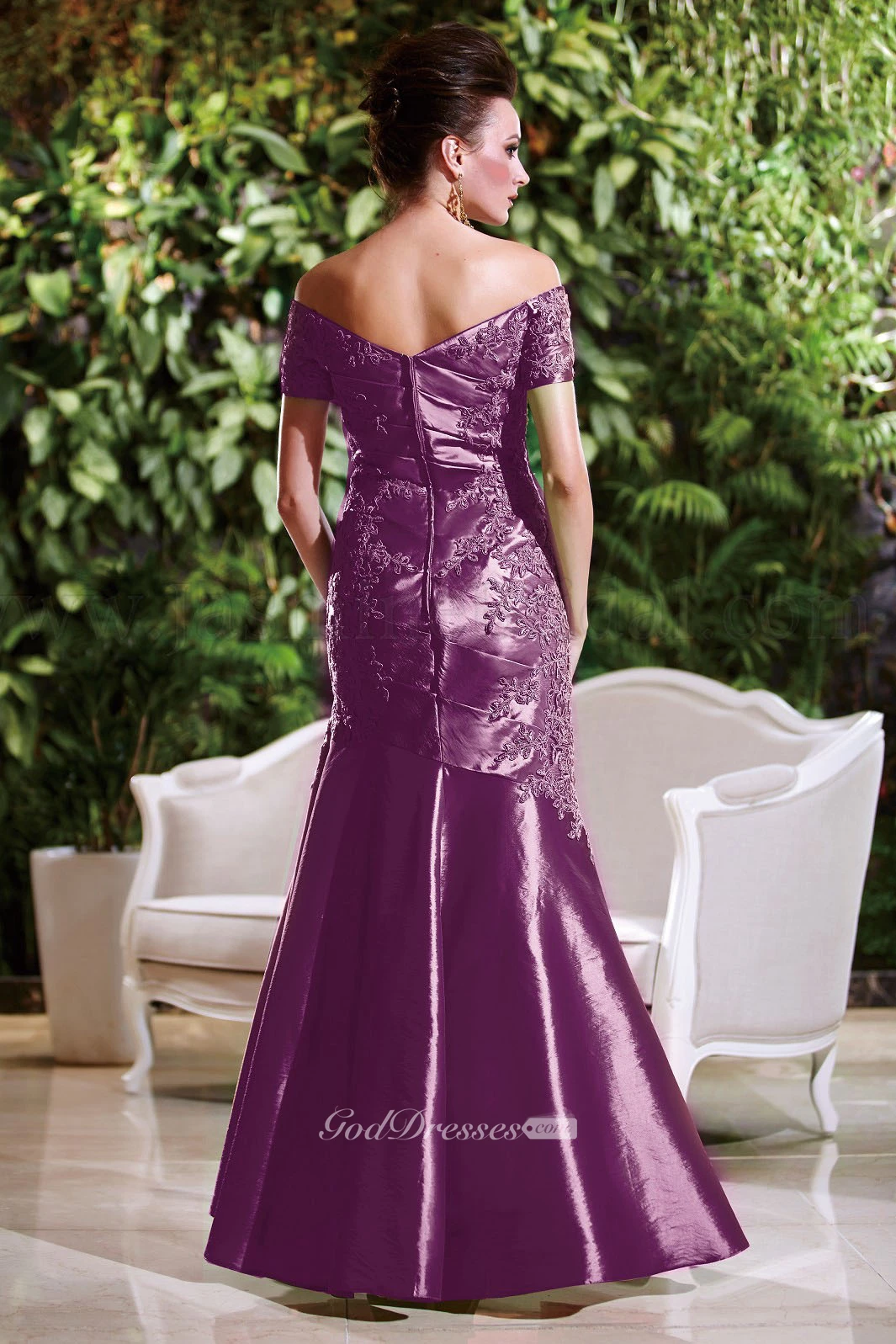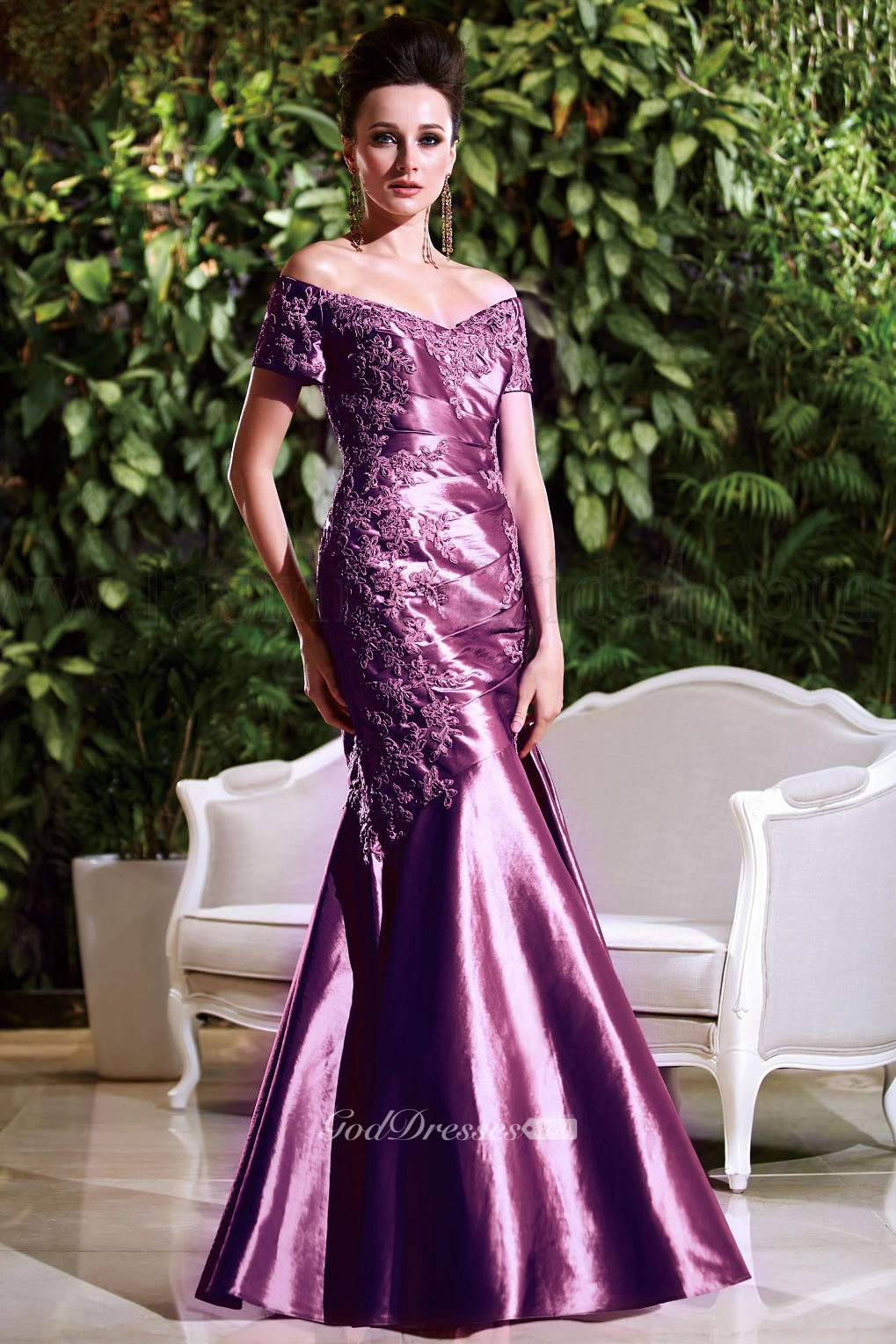 Short-Sleeved V-Neck Mermaid Mother Of The Bride Dress With Appliques