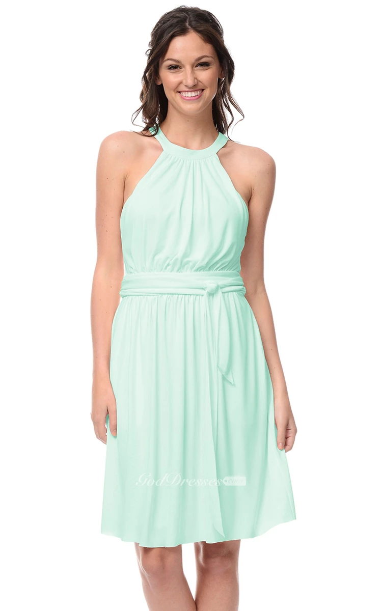 Short Sleeveless Dress With Halter Neckline