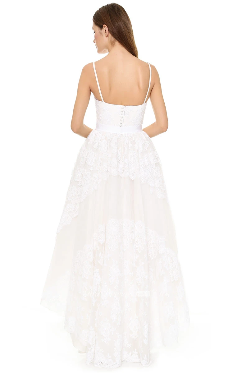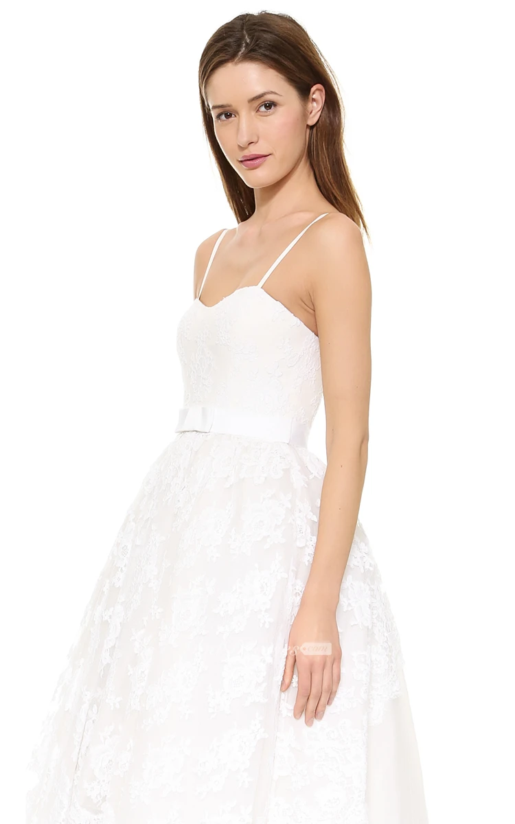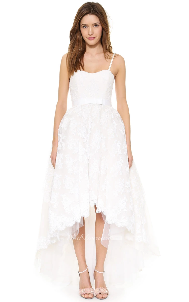Short Spaghetti A-line Lace Dress With High-low Style