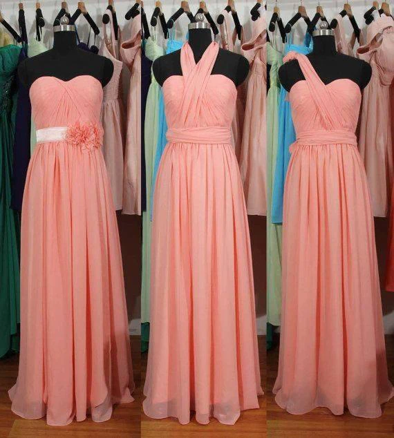 Simple A-Line Chiffon Convertible Bridesmaid Gowns Ruffles Evening Dresses
