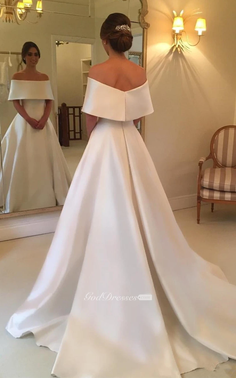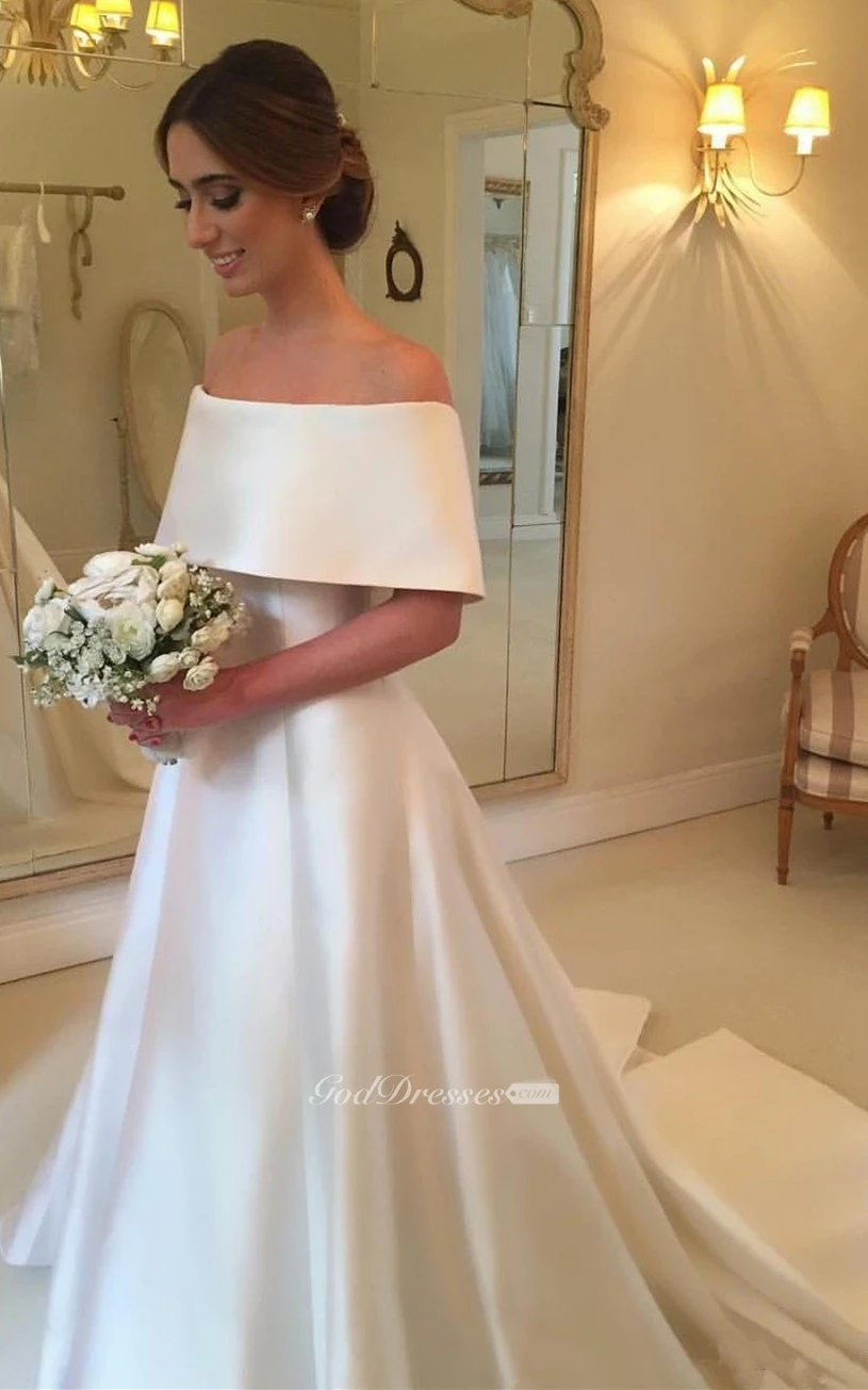 Simple A Line Satin Court Train Wedding Dress with Ruching