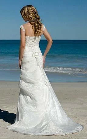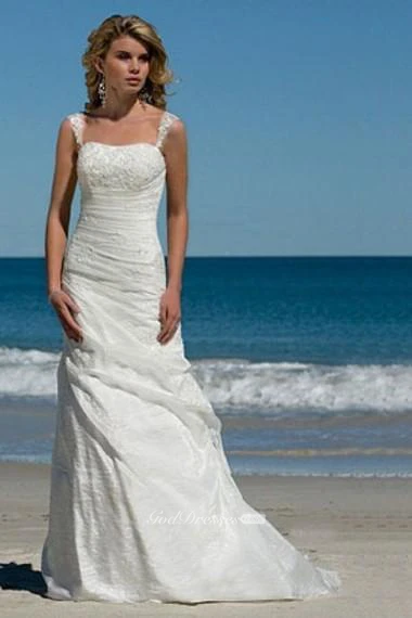 Simple a Line Spaghetti Straps Taffeta Summer Beach Bridal Wedding Dress