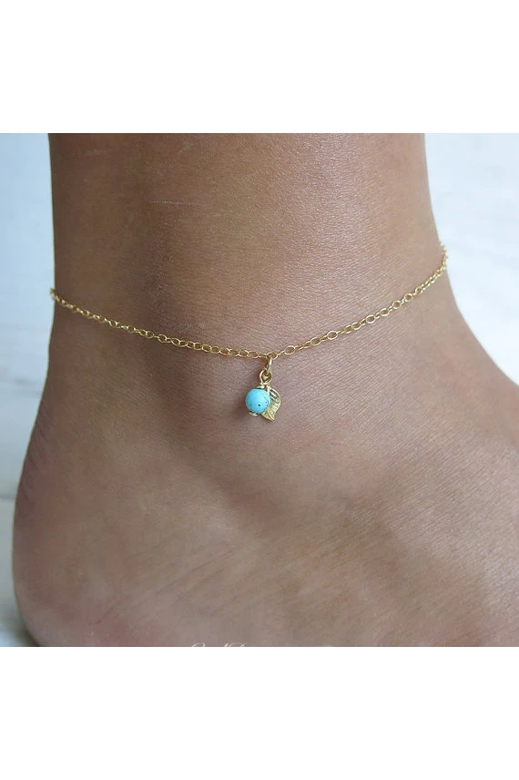 Simple And Exquisite Fashion Leaves Turquoise Anklet Jewelry