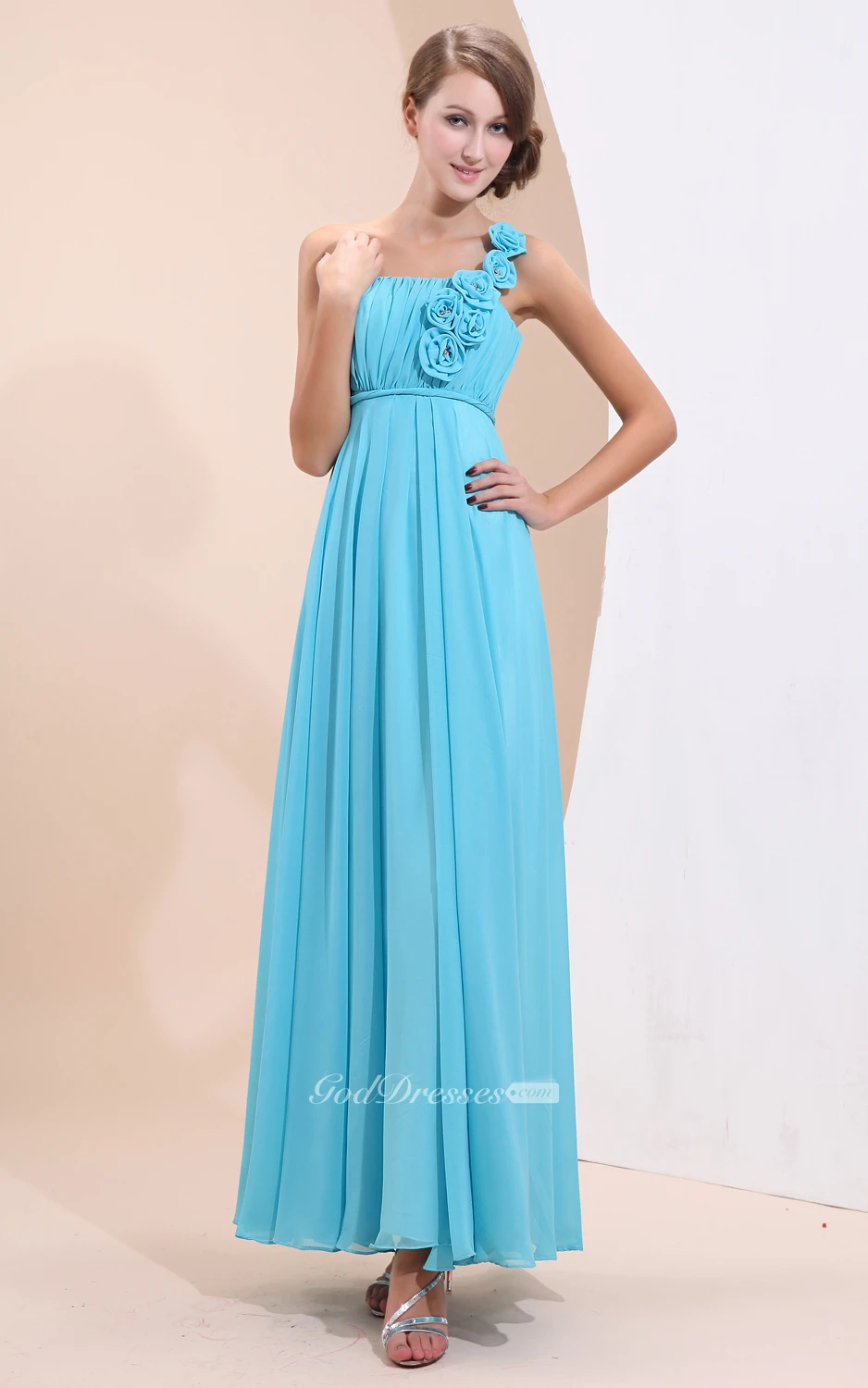 Simple Ankle-Length Chiffon Dress With Floral Strap