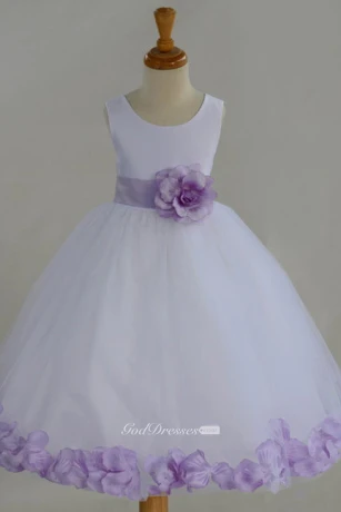 Simple Ball Gown Chiffon and Tulle Sleeveless Sash Bow Flower Girl Dress