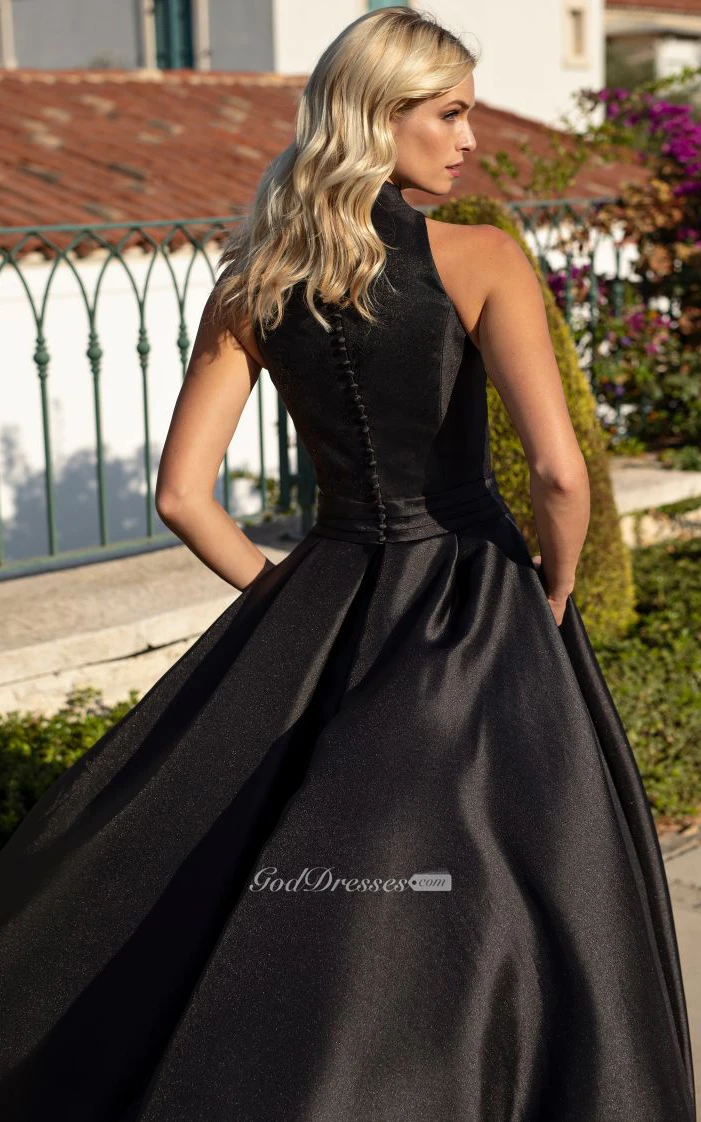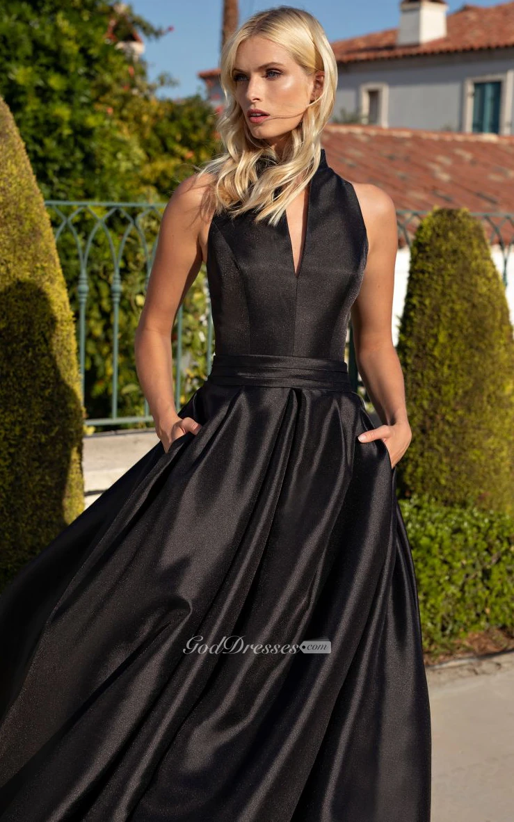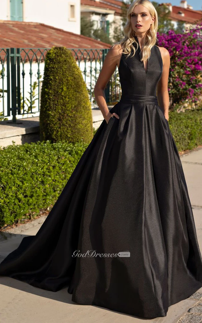 Simple Brush Train Sleeveless Satin Ball Gown Formal Dress with Ruching