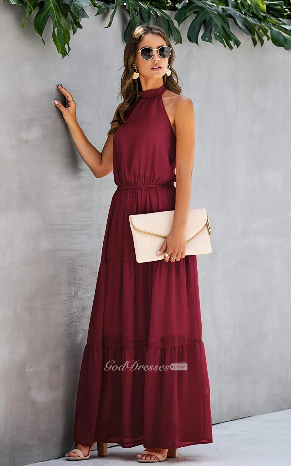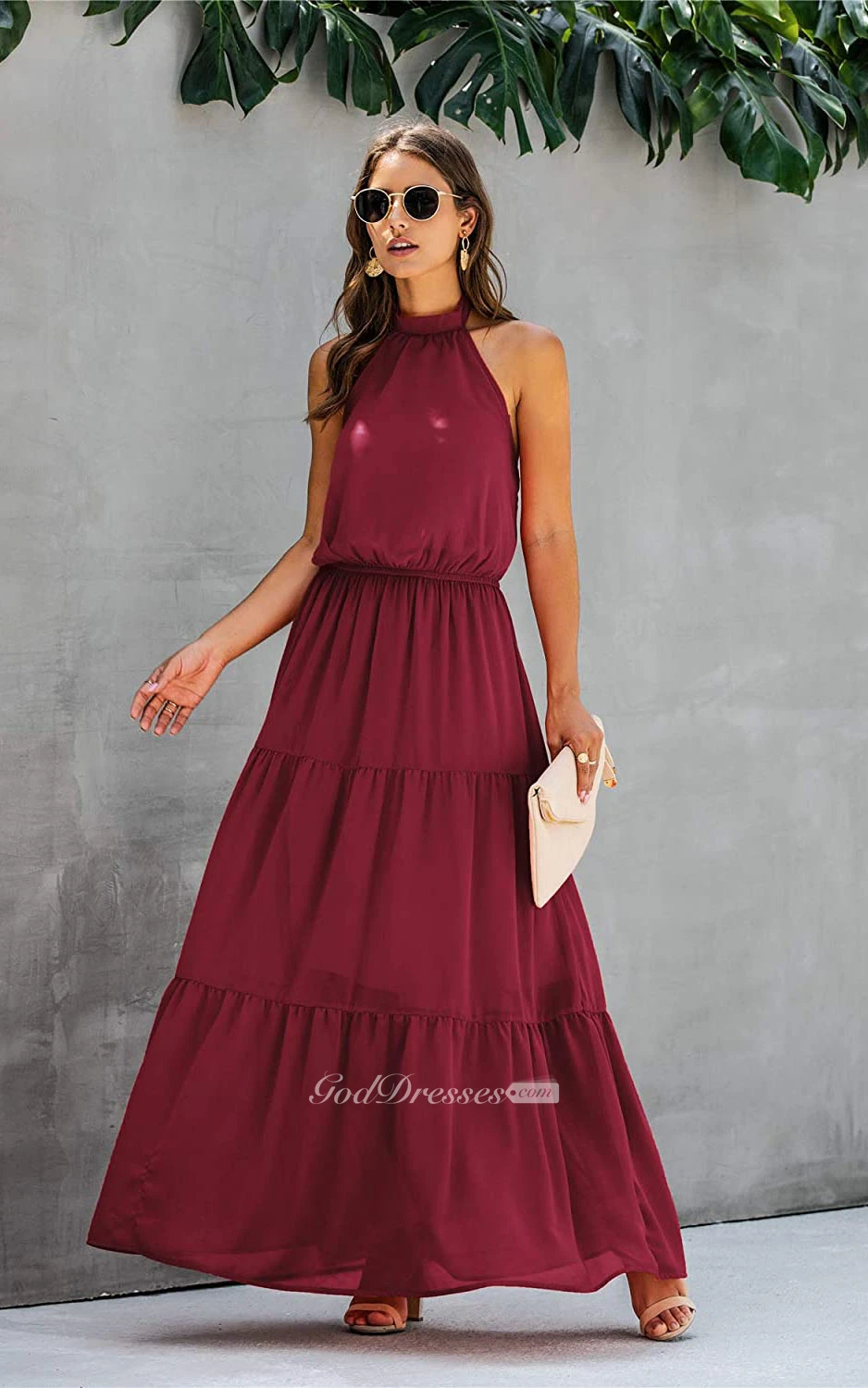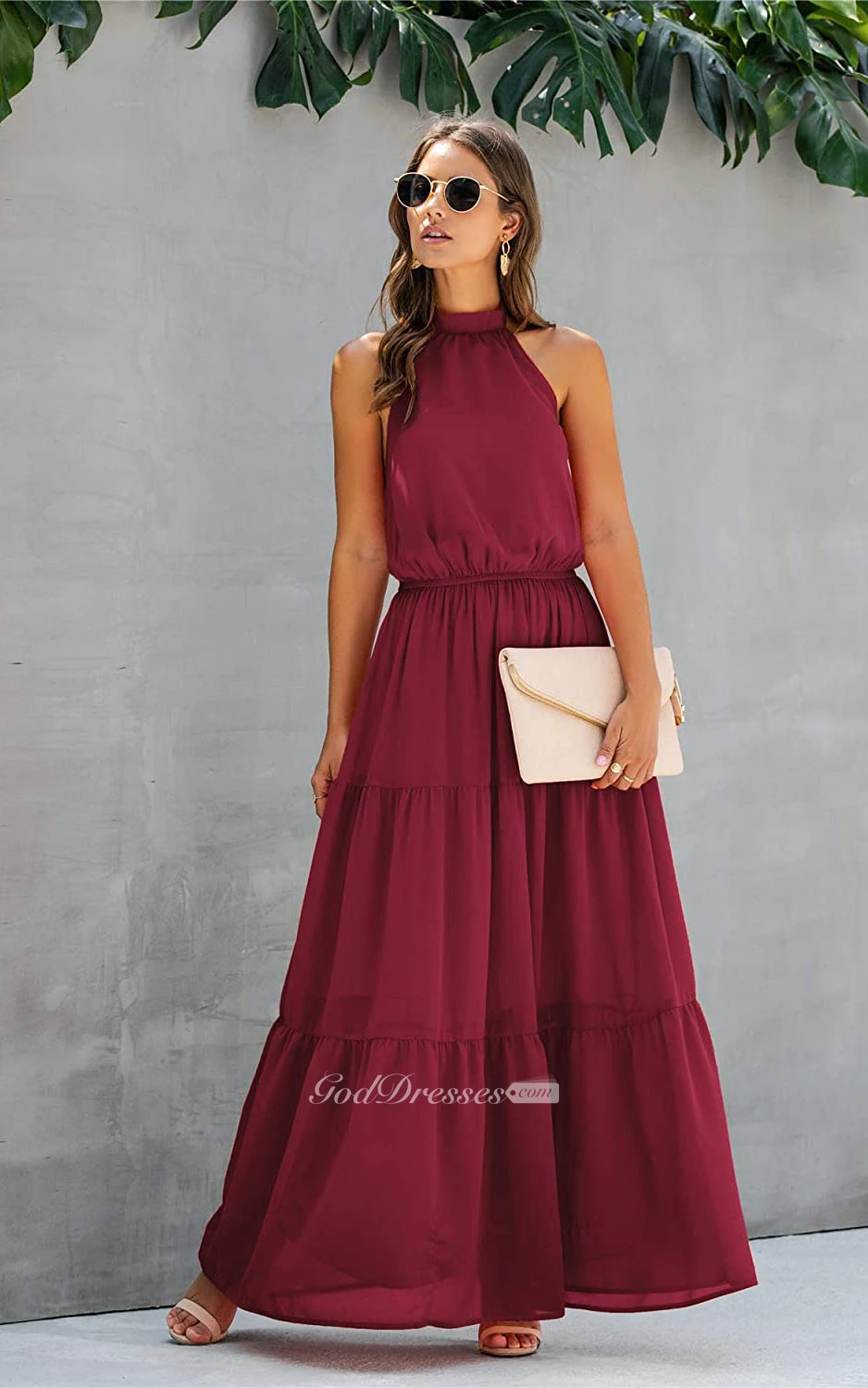Simple Chiffon Halter A Line Sleeveless Prom Formal Dress With Ruffles