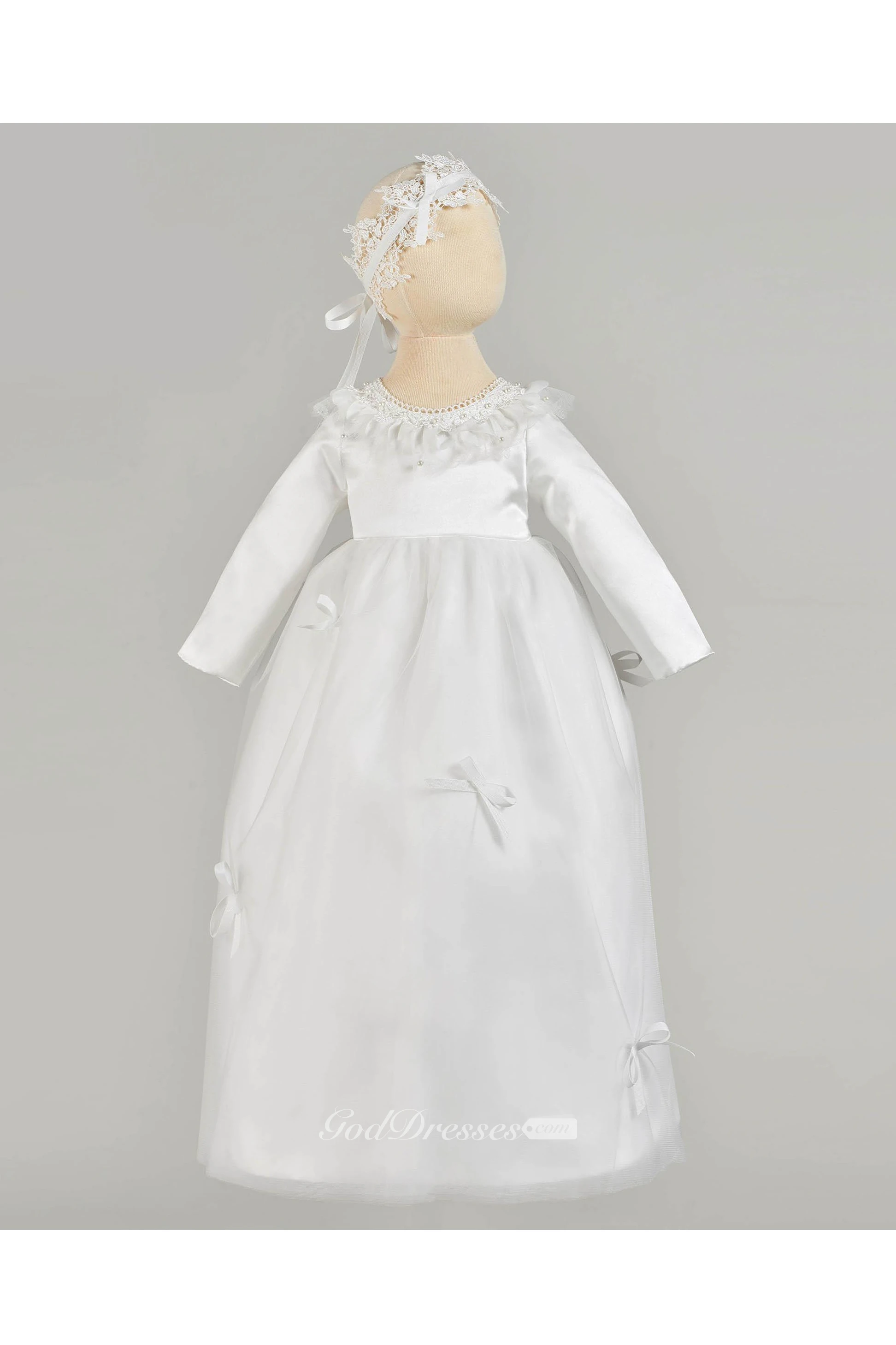 Simple Circular Ruffle Collar Christening Gown With Bows