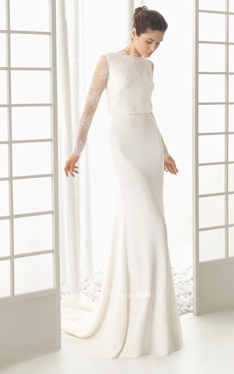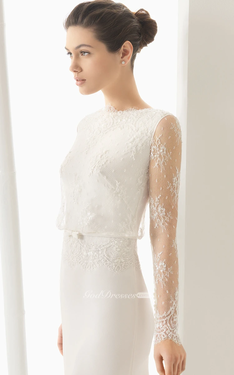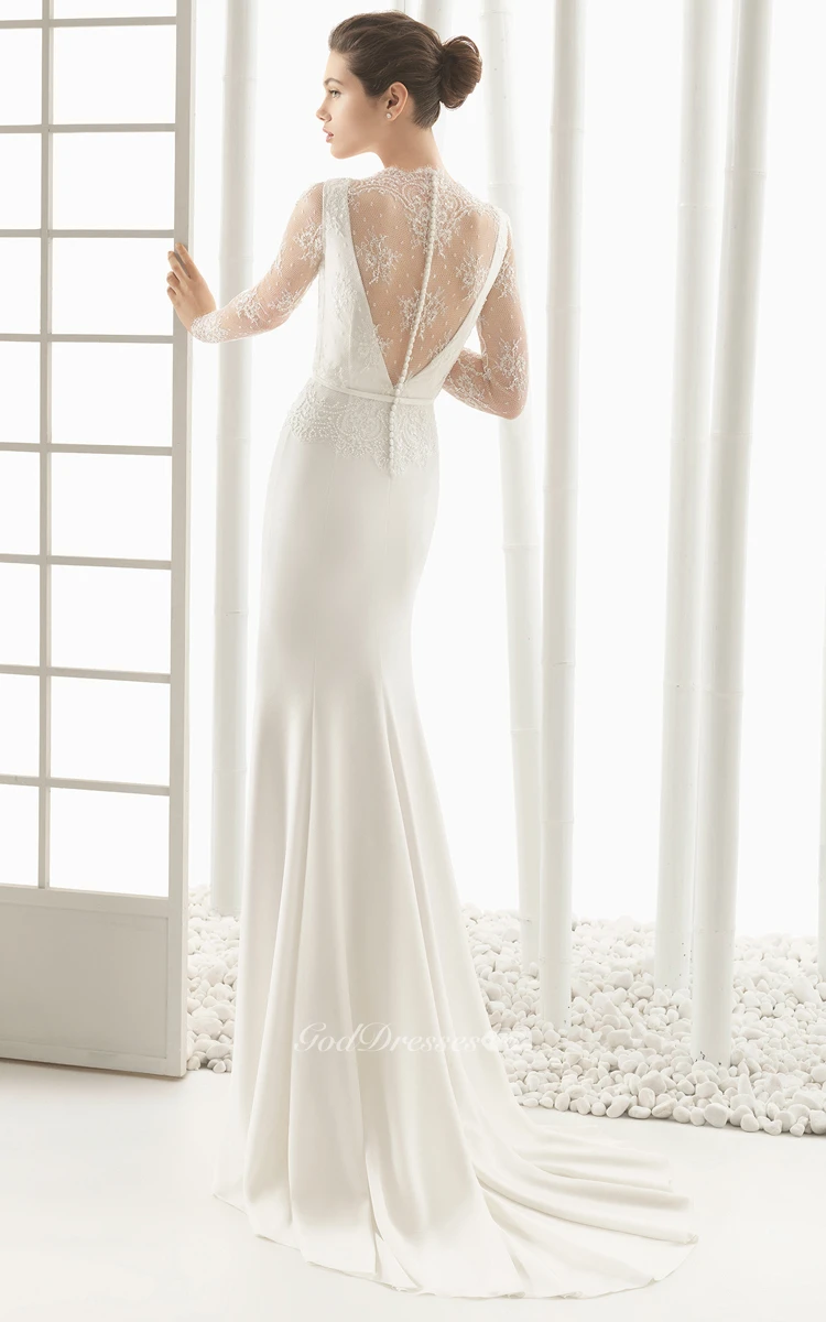 Simple-Designed Sheath With Illusion Long Sleeves And Back