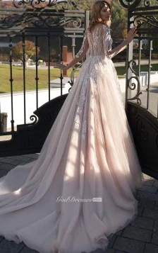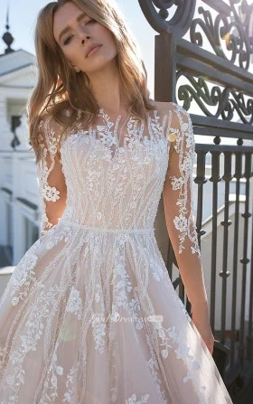 Simple Illusion Jewel A Line Lace Floor-length Long Sleeve Wedding Dress with Appliques