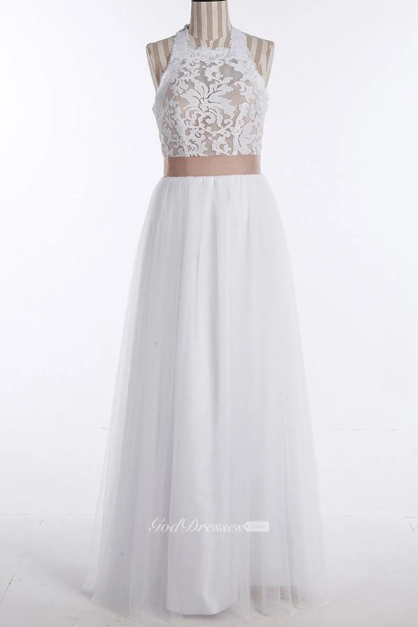 Simple Jewel Sleeveless Floor-length Lace Top Wedding Dress