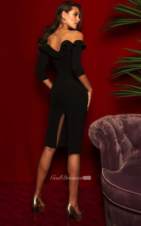 Simple Knee-length Sleeveless Jersey Sheath Evening Dress with Split Back