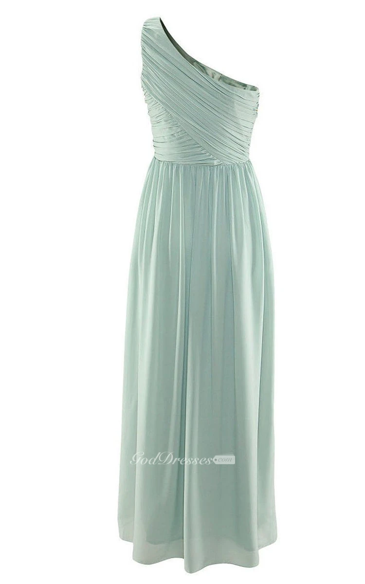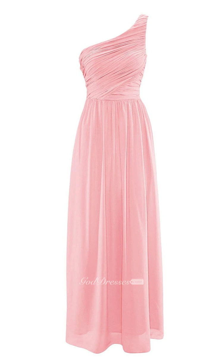 Simple One-shoulder Ruched Chiffon Sheath Gown