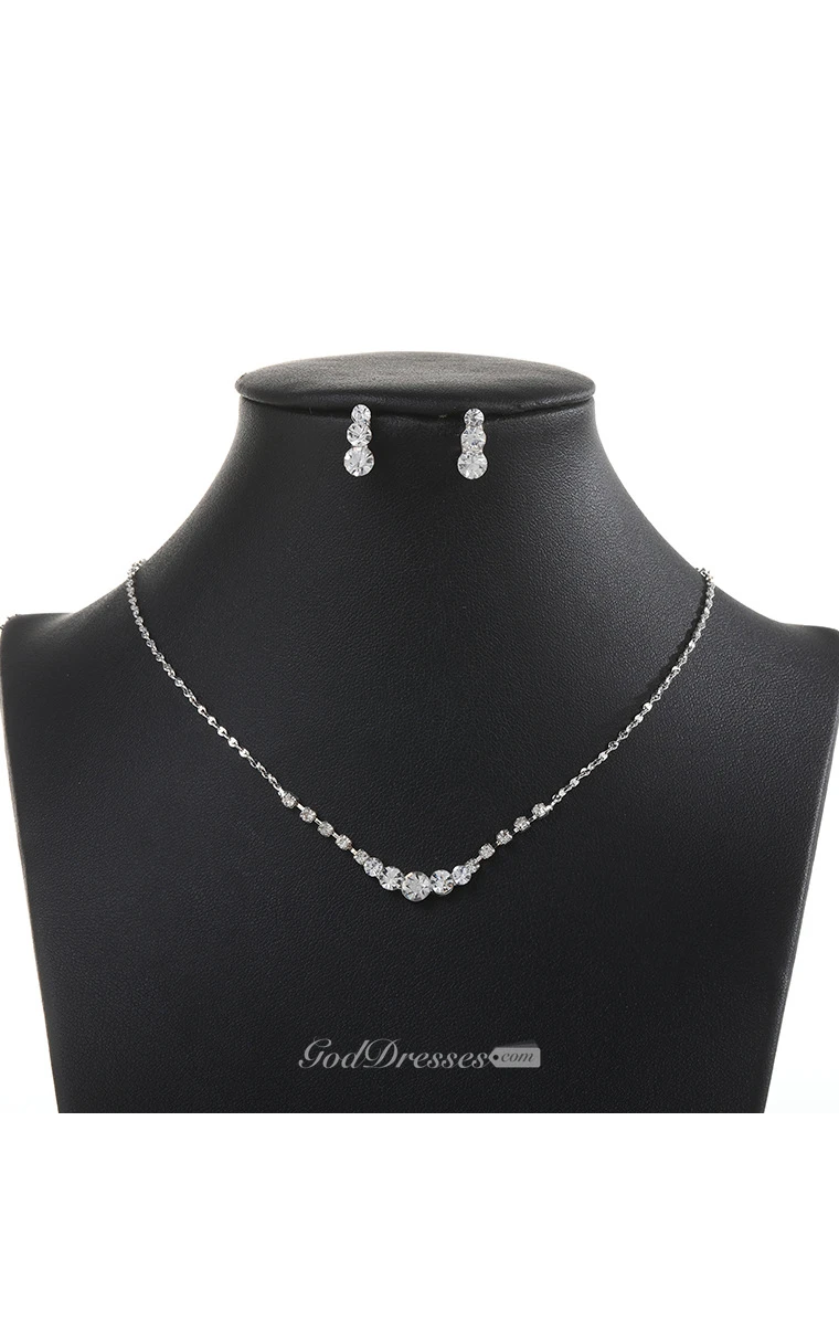 Simple Rhinestone Necklace and Earrings Bridal Jewelry Set