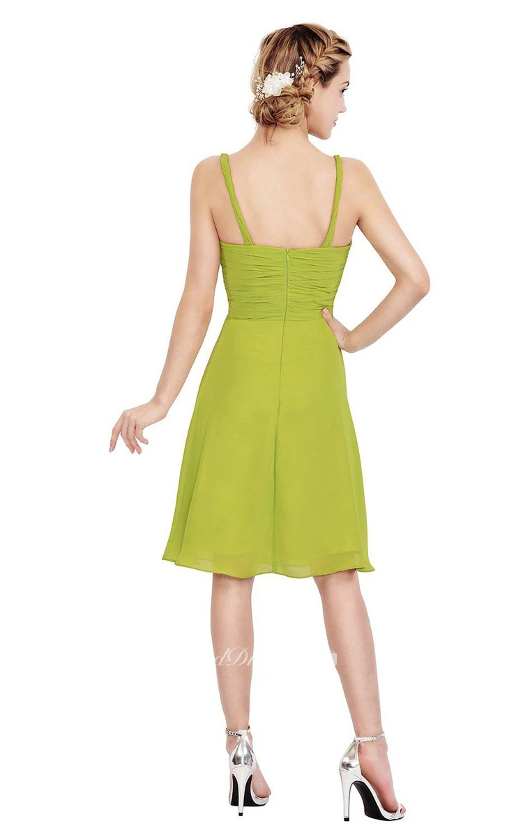 Simple Sleeveless A-line Ruched Chiffon Dress