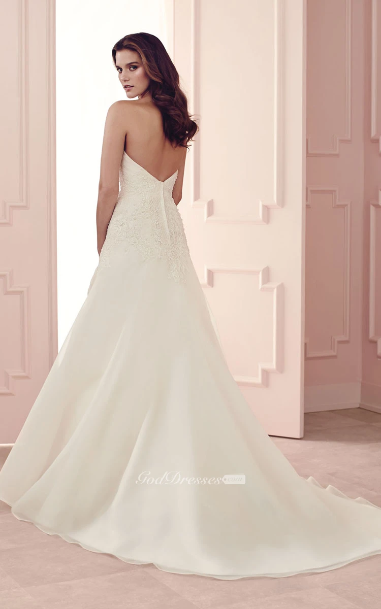 Simple Strapless A-line Lace Dress With Appliques
